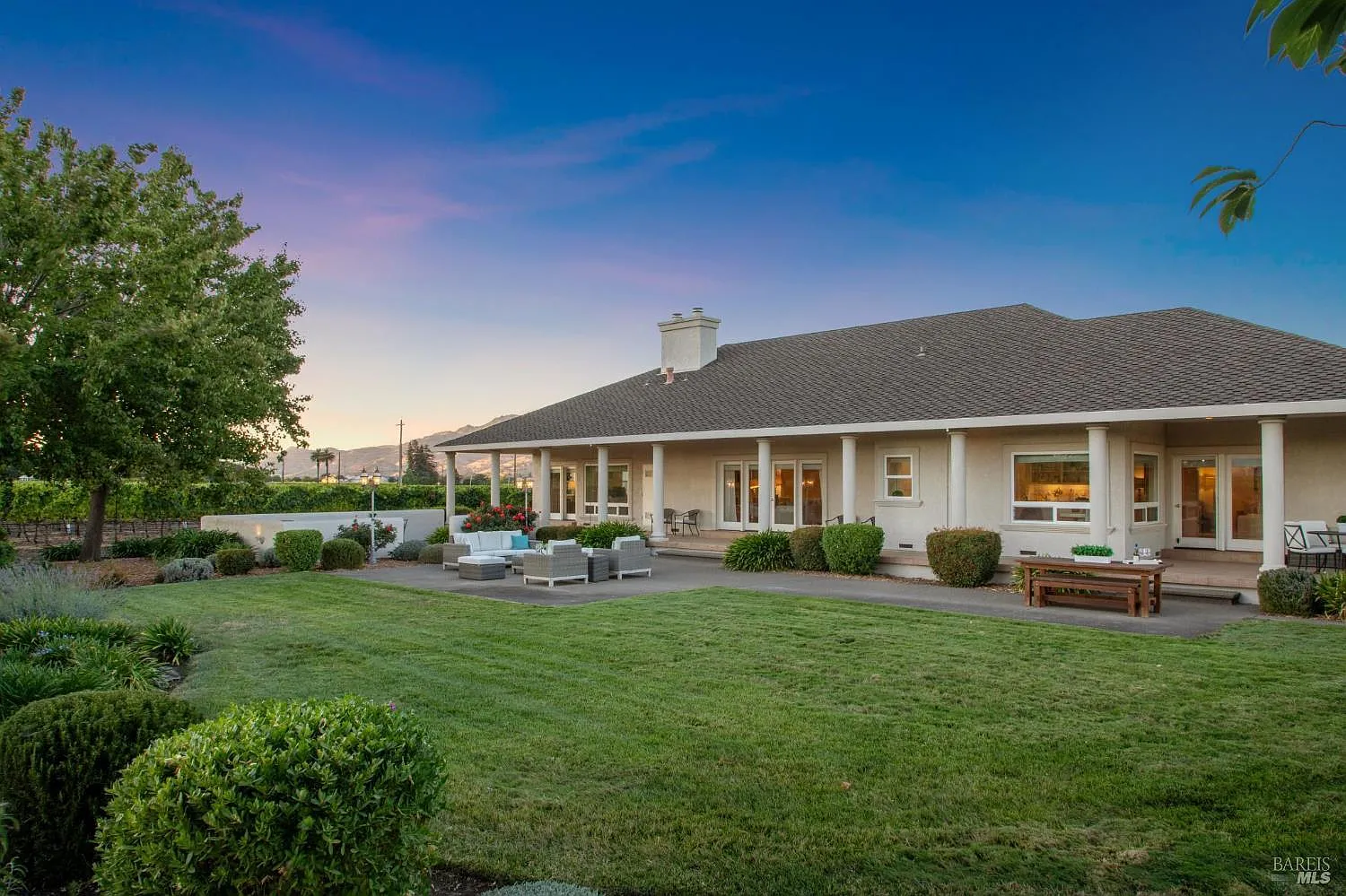 Rare valley floor location in coveted Oak Knoll AVA, 10.19 +/- acre vineyard estate with panoramic vineyard & mountain views ideally located in the Big Ranch Rd corridor just minutes to downtown Napa, Yountville, world-class dining, shopping & Vine Trail. Surrounded by premier vineyards, estate homes, & renowned wineries, this property includes 7+/- acres of income producing Chardonnay professionally managed & sold to Miner Family Winery (with 8/10 acre leased to Materra). Single level custom home with 3521 sq ft 4 BDR 3 BA plus bonus room currently purposed as an office. Endless opportunities exist including home expansion, addition of guesthouse or even construction of a winery. With two strong wells including a brand new well in 2025, natural gas & undergrounded electrical, this property delivers all the conveniences of modern country living. Fantastic floor plan with great room concept featuring an abundance of natural light & series of French doors that open to multiple outdoor living & dining areas including expansive partial wrap-around porch, spacious patios, raised garden beds & lush lawn all with spectacular views of the Mayacamas Mts to the West & Vaca Mts to the East. Luxurious main ensuite with seating area & fireplace, oversized 3 car garage, guest parking & more!