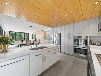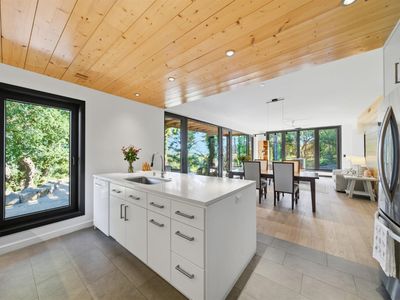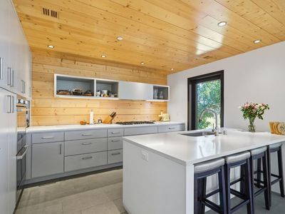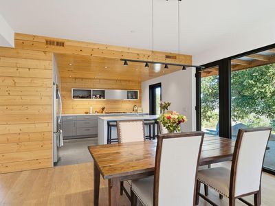 Nestled on nearly 6 acres at the end of a quiet cul-de-sac, this exceptional modern home on one level offers a rare blend of design, comfort, and sustainability - just a short drive to shops, , amenities, top-rated schools & world-class wineries. Closely situated to Annadel State Park, the property offers easy access to miles of scenic trails & natural beauty. Built in 2021, the 3BD/3BA residence showcases clean architectural lines, weathering steel (Cor-Ten) exterior, western white pine accents, white oak hardwood flooring & porcelain/marble Daltile tiles that add subtle sophistication throughout. Expansive walls of glass frame stunning views of rolling hills & mountains. The open-concept great room with a gas fireplace flows into a designer kitchen featuring quartz countertops, a double oven & outdoor dining under a pergola. Custom blinds in the bedrooms offer privacy, while a separate study provides the ideal space for work or creativity. The entire home is designed to be highly energy efficient incl. its mechanical systems, building envelope, construction materials, air sealing & triple-pane windows. Solar power, a standby generator & shipping container for storage complete this peaceful, stylish retreat where modern living meets sustainability in the heart of Bennett Vall
