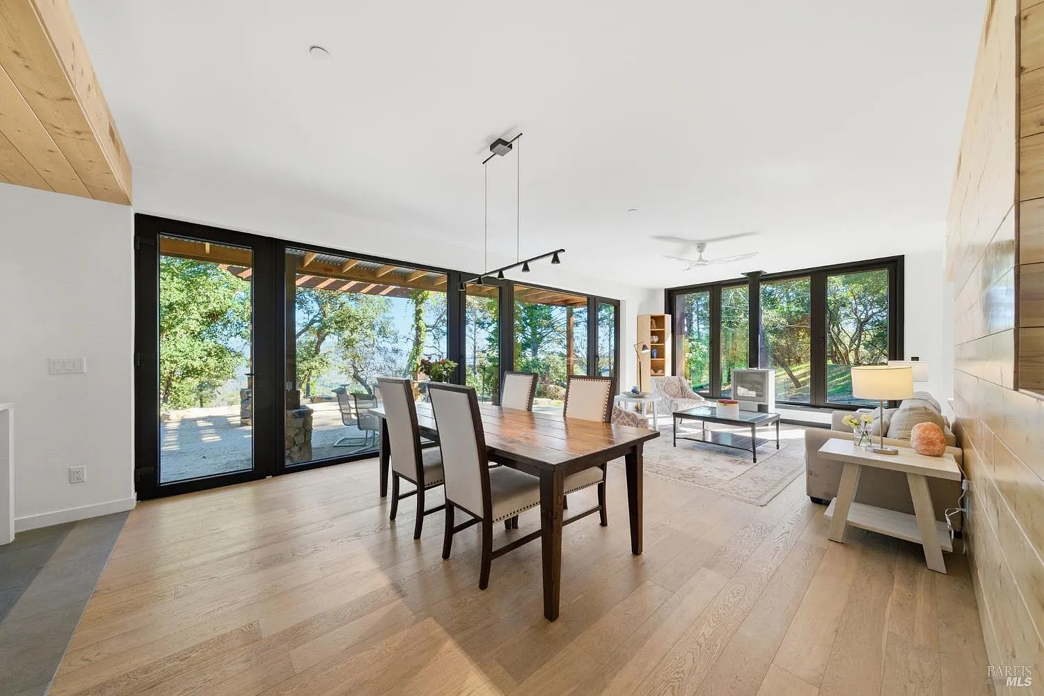 NEW PRICE! Nestled on nearly 6 acres at the end of a quiet cul-de-sac, this exceptional modern home on one level offers a rare blend of design, comfort, and sustainability - just a short drive to shops, , amenities, top-rated schools & world-class wineries. Closely situated to Annadel State Park, the property offers easy access to miles of scenic trails & natural beauty. Built in 2021, the 3BD/3BA residence showcases clean architectural lines, weathering steel (Cor-Ten) exterior, western white pine accents, white oak hardwood flooring & porcelain/marble Daltile tiles that add subtle sophistication throughout. Expansive walls of glass frame stunning views of rolling hills & mountains. The open-concept great room with a gas fireplace flows into a designer kitchen featuring quartz countertops, a double oven & outdoor dining under a pergola. Custom blinds in the bedrooms offer privacy, while a separate study provides the ideal space for work or creativity. The entire home is designed to be highly energy efficient incl. its mechanical systems, building envelope, construction materials, air sealing & triple-pane windows. Solar power, a standby generator & shipping container for storage complete this peaceful, stylish retreat where modern living meets sustainability in the heart of Bennett Valley - on Bennett Ridge, where properties rarely come available.