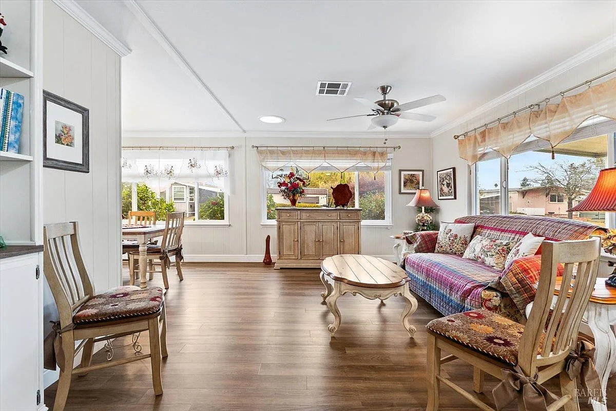 Welcome to 228 Regency Court in Santa Rosa a beautifully updated home located in the desirable Valle Vista 55+ community where you own the land. This well-maintained two-bedroom, two-bath residence showcases true pride of ownership throughout. Thoughtful updates enhance both comfort and style, creating a warm and inviting living environment. The spacious layout includes a bright and versatile enclosed patio, perfect for relaxing, hobbies, or enjoying morning coffee year-round. The home offers an ideal blend of functionality and low-maintenance living, designed for ease and enjoyment. Situated in a peaceful community with a welcoming atmosphere, this move-in-ready home is ready for its next owner to enjoy all it has to offer.