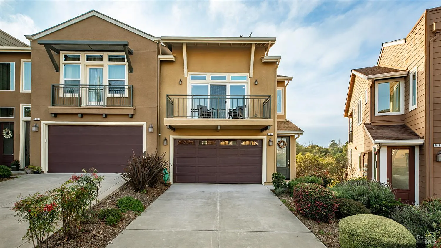 Built in 2017, this light-filled end-unit contemporary home offers quick access to Historic Downtown Petaluma and Highway 101, combining walkability, views, and commuter convenience. Offering 2+ bedrooms, 2.5 bathrooms, and 1,907 square feet of thoughtfully designed living space, the entry level features a spacious primary suite with walk-in closet and dual-sink bath, while the main living areas are positioned above to capture incredible South and West-facing views and abundant natural light. The upper level includes an open living and dining area with crown moulding, engineered birch wood floors, ceiling speakers with surround sound, and LED recessed lighting throughout. The well-appointed kitchen features granite countertops, a center island with storage and power, upgraded cabinetry, under-cabinet LED lighting, and a walk-in pantry. A second bedroom and a 15' x 11' denideal as a third bedroom or home officeoffer flexible living options. Additional highlights include a three-zone HVAC system, home network wiring, interior and inter-floor insulation, tile floors in bathrooms and entryways, laundry room cabinetry, gas dryer connection, a 30-year roof, Energy Star certification, and Green Point rating. The landscaped backyard sits on a premium lot with irrigation and French drain. Close to downtown dining, shopping, and riverfront trails with easy freeway access.