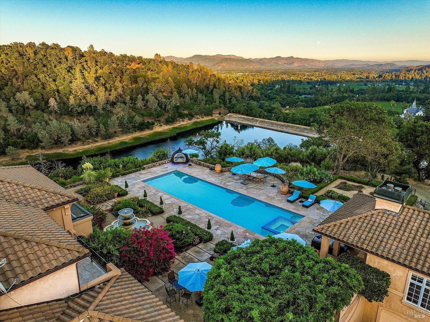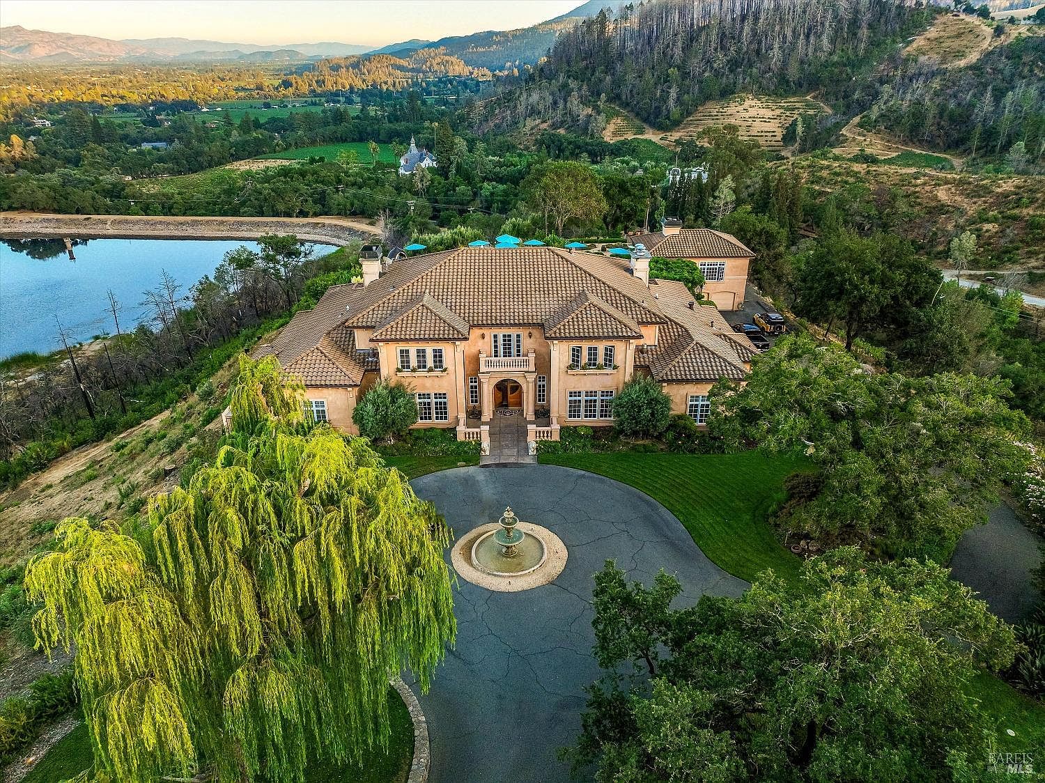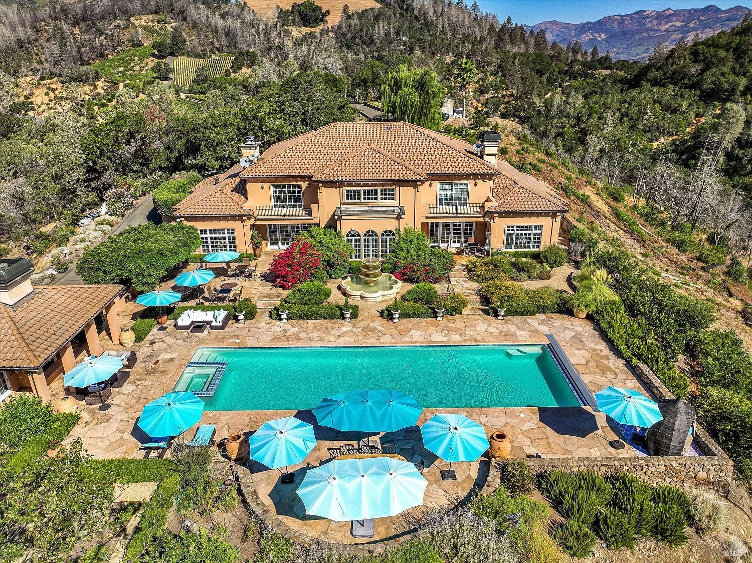 2900 Spring Mountain Road, where every glance is a postcard. This private, gated 14.94+/-acre estate sits atop Spring Mountain, offering breathtaking views of Napa Valley. Designed for those seeking privacy, luxury, and natural beauty, this exceptional property stands as a sanctuary in one of the valley's most coveted locations. The estate is a custom-built residence spanning approximately 12,000 square feet. Soaring ceilings and impeccable craftsmanship define spaces designed for both intimate comfort and grand entertaining. Wine enthusiasts will appreciate the 5,000-bottle cellar and dedicated tasting room, perfect for collectors and connoisseurs. Resort-style amenities throughout elevate the daily living experience. The outdoor spaces rival the interior's grandeur. An 80-foot swimmer's pool anchors the exterior, complemented by an outdoor kitchen with a pizza oven and stone-terraced gardens. Tranquil koi ponds dot the landscape, creating peaceful moments amid nature's embrace. A separate guest house offers additional accommodations while ensuring privacy for both hosts and visitors. This estate masterfully blends luxury living with natural tranquility, presenting an unparalleled opportunity to own a private retreat in one of California's most prestigious locations.
