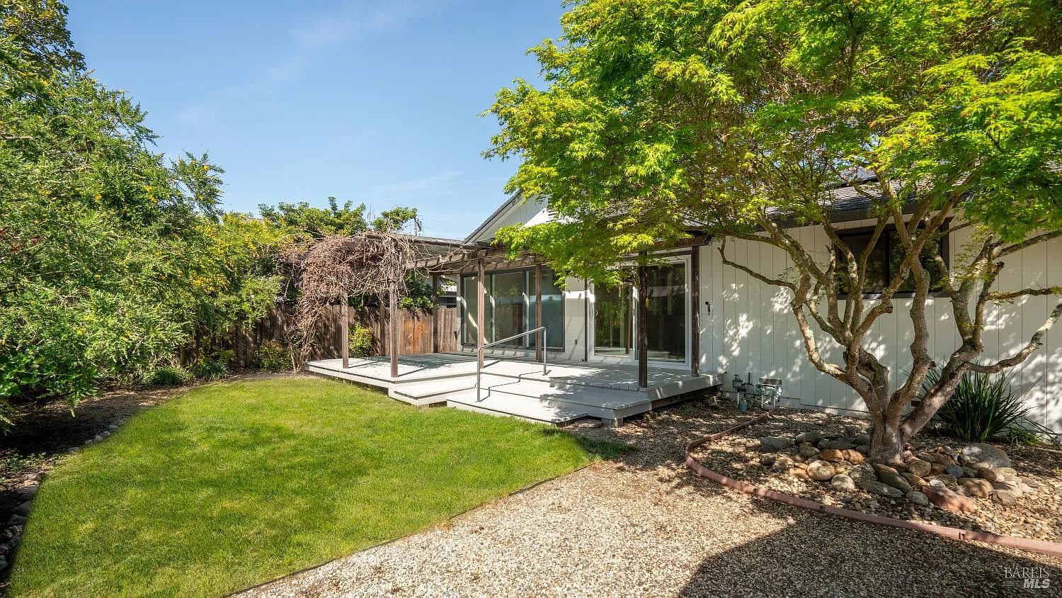 Located in the highly sought-after Bennett Valley States' neighborhood, this updated 1950s home combines classic character with thoughtful modern improvements. The kitchen offers breakfast bar seating and views of the backyard, with an adjacent dining area and wet bar for added flexibility. The fully renovated primary bathroom features high-end finishes and a deep Japanese soaking tub, creating a spa-inspired retreat. A skylight fills the secondary bathroom with natural light, enhancing the home's bright and open feel. A new sliding glass door opens to a vine-covered deck and brick patio, creating a comfortable outdoor space for relaxing or entertaining. The backyard also includes a studio shed for potential office, workout or storage and space to enjoy Sonoma County's warm evenings. Energy-efficient features include owned solar with a Tesla battery backup system, EV charging capability, a tankless water heater, and argon-filled windows that bring in abundant natural light throughout the home. Conveniently located just minutes from Howarth Park, Spring Lake, and Annadel State Park, offering easy access to hiking, biking, boating, and some of Santa Rosa's best outdoor recreation, along with nearby shopping, dining, and everyday conveniences.