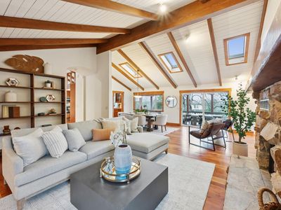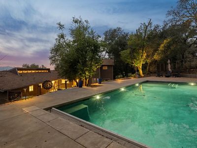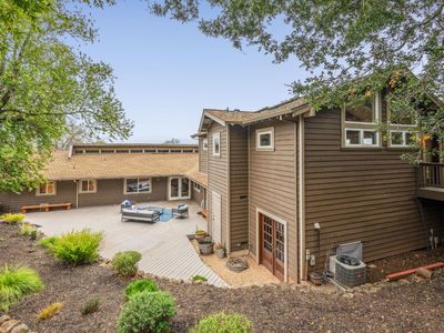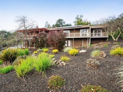 Reimagine a well-located home with space, privacy, and views, creating something truly special in one of Santa Rosa's most desirable settings. This Bennett Valley estate with its enduring style and resort-like yard is poised for its next chapter. This spacious, well-laid-out home offers a sense of privacy that feels worlds away yet sits just minutes from amenities, parks, and miles of hiking and biking trails. The truly exceptional backyard is thoughtfully designed for both grand entertaining and everyday enjoyment. The expansive deck unfolds from the breakfast room - an ideal setting for large gatherings or peaceful lounging surrounded by nature. Handsomely laid stone steps guide you to your own private retreat on the terrace, perfectly positioned to capture sweeping views of the hills while offering space for sun and relaxation poolside. The grounds are enriched by an abundance of mature fruit trees, a hobby vineyard and plantings, giving the landscape a lush, established feel. The result is a backyard that is nothing short of extraordinary, a haven that feels both expansive and intimate, beautifully curated yet natural, and one of the home's most remarkable features. Vaulted, beamed ceilings crown the living room, where a dramatic stone fireplace anchors the space and creates a timeless focal point. Adjacent dining area flows effortlessly to the kitchen, perfectly positioned for both intimate dinners and social get-togethers. The generously sized kitchen is a true hub for daily life featuring a large center island, cooktop, double ovens, and abundant storage - ideal for those who enjoy cooking, hosting, or simply gathering around the heart of the home. The main level offers comfortable and mostly single-level living with a primary suite, three additional bedrooms, two bathrooms, laundry room and access to garages. The lower level adds flexibility with a large family room complete with wet bar, full bathroom, plus a spacious room for a bedroom or office. A separate entrance makes this level ideal for guests, extended family, or potential second unit. Additional highlights include a wine cellar, 2-car garage with storage and ~800sf bonus room with half bath above it, offering endless possibilities for a studio or creative space. Timeless Design. Enduring Style. Exceptional Setting.