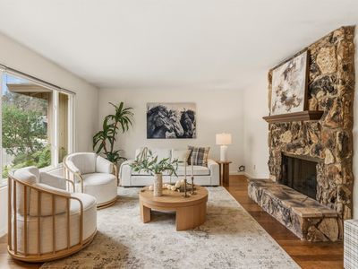Located on a quiet corner lot in the highly sought-after Sherwood Forest neighborhood, this inviting single-level home offers comfort, character, and exceptional outdoor space. Engineered hardwood floors run through the main living areas and bedrooms, creating a cohesive and welcoming feel throughout. The living room is anchored by a classic stone fireplace, adding warmth and charm, while large windows bring in abundant natural light. The kitchen and dining area offer a functional layout with easy access to the backyard, ideal for everyday living or casual entertaining. The primary bedroom features a walk-in closet and a private, peaceful retreat. Both bathrooms are well maintained and thoughtfully positioned for convenience. Step outside to the generous backyard, which provides ample room to garden, relax, or entertain, with a corner lot setting that enhances privacy and usability. Set within an established neighborhood known for its tree-lined streets and close proximity to parks, shopping, dining, and everyday amenities and medical services, this home presents an excellent opportunity to enjoy one of Santa Rosa's most beloved communities.