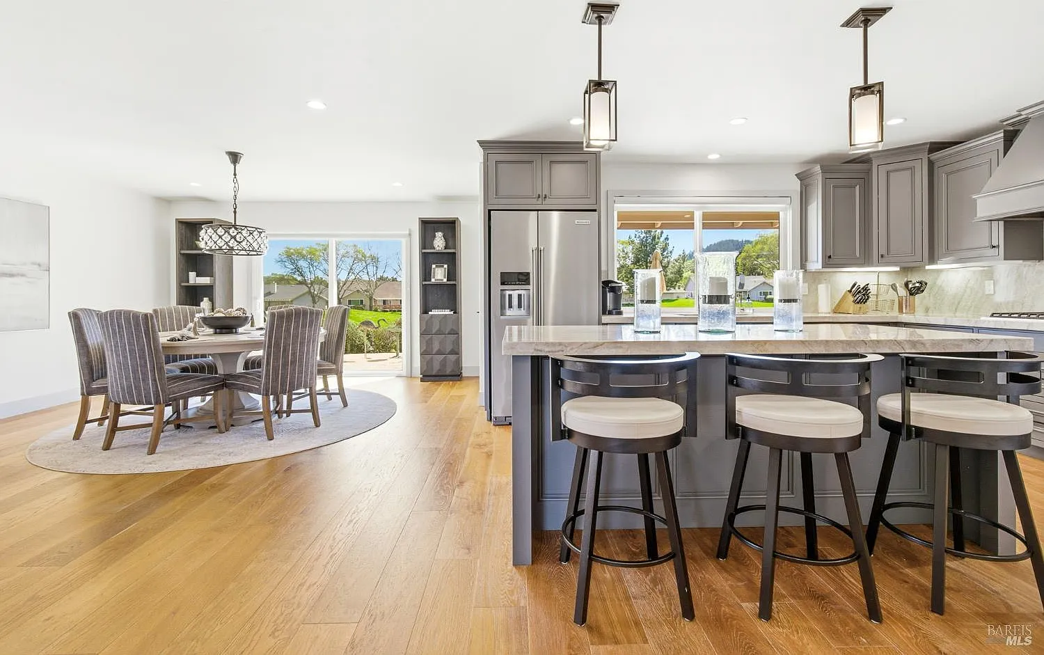 Nestled on a quiet cul-de-sac of Oakmont you'll find this exquisite home offering a spacious and open floor plan that overlooks the golf course and mountains beyond. Every detail was thoughtfully designed creating a tranquil space with an abundance of natural light. The chef's kitchen is a culinary delight with quartzite counter tops, large island with seating, lots of storage and counter space, and top-of-the-line appliances including Viking gas cooktop and two-drawer Fisher & Paykell dishwasher. Distressed engineered hardwood floors, recessed lighting, interior wood doors with updated hardware, dual pane windows, contemporary window shades, and wet bar with wine fridge are just some of the many updates. You'll absolutely love waking up in the primary suite each morning overlooking the beautiful view. The bath features extensive counter space and storage options, open shower with seating, and a large walk-in closet - the doorways in this part of the home have all been widened. There is a stacked washer and dryer with storage and counterspace in the laundry area. Enjoy a seamless flow between indoors and out with two glass sliders and a French door, making this home perfect for those that like to entertain. The homeowner spared no expense on landscaping that includes a paver stone patio, built-in BBQ, covered seating area and retractable awning. This home is ready for its new owner!