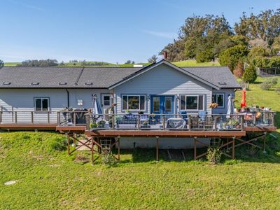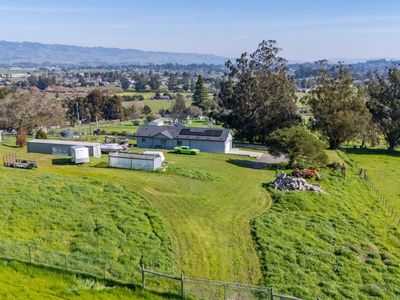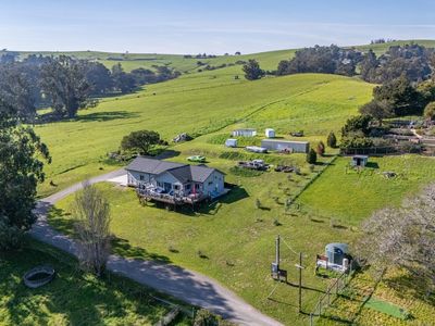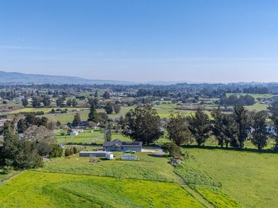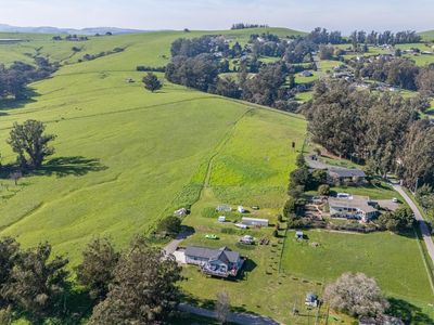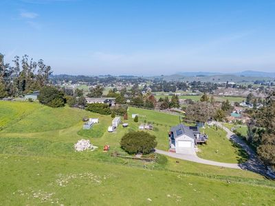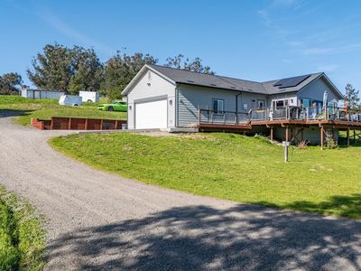 Welcome to 268 Eucalyptus Road in Petaluma, a modern farmhouse retreat that blends country serenity with income-generating opportunity. Set on nearly six acres of gently rolling land, this thoughtfully designed property features a two-bedroom, two-bathroom main residence built in 2022, offering approximately 1,199 square feet of comfortable, single-level living. Just moments away, a detached two-bedroom, one-bath guest cottage spans approximately 1,218 square feet and serves as an ideal rental unit or private guest quarters. The land itself invites endless opportunities from hobby farming and equestrian use to future estate expansion. The infrastructure is already in place to support your vision, with seller-owned solar panels that dramatically reduce utility costs, dual 200-amp electrical meters, and an upgraded well system equipped with two inline pumps and a 4,500-gallon storage tank. The septic system is designed to accommodate a future three-bedroom main house, and the SRA-compliant driveway ensures easy access with its approximately 14-foot width and turnabouts. Whether you're heading to wine country, the coast, or the Bay Area, this location offers the ideal balance of rural charm and urban convenience.