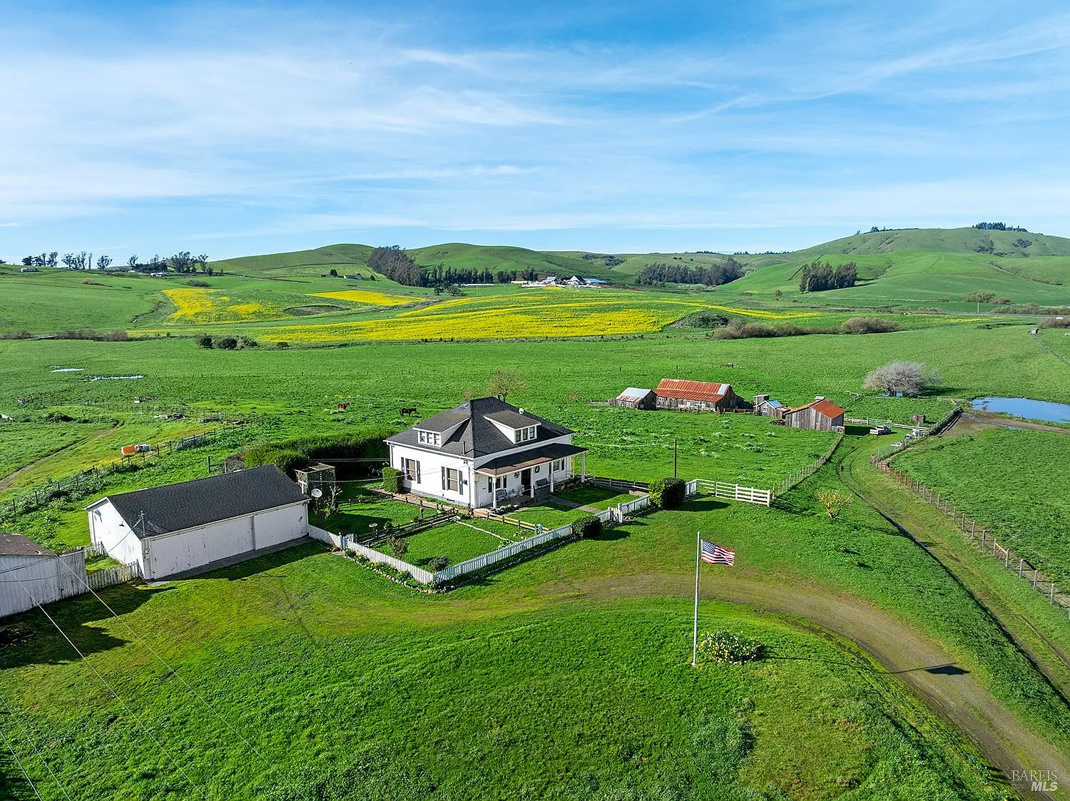 Welcome to Braga Ranch, a rare offering in the coastal hills of Sonoma County, located in the charming community of Valley Ford within the Estero Americano watershed. On the market for the first time in nearly 100 years, this historic ranch has been lovingly stewarded by this family for three generations. Long before its years as a working dairy and pasture operation, the land was home to an early flour mill. The original mill operated with twelve horses turning two round stones and later expanded to include two steam engines to meet the demand for the ranch's high-quality flour, an important piece of local agricultural history. Today, Braga Ranch continues its agricultural legacy and is currently used for livestock and residential living. The sale includes three parcels, a farmhouse, a barn, and several rustic outbuildings that support ranch operations. Located just down the road from downtown Valley Ford, the property offers easy access to the town's beloved local spots and is within walking distance to Dinucci's Italian Restaurant, Valley Ford Market, and Estero Cafe. Valley Ford is known for its relaxed rural charm, local shops, dairies, artisan cheeses, oysters, and its connection to the historic Christo Running Fence installation. The property also offers convenient access to the Sonoma Coast and surrounding destinations and is just minutes from Bodega Bay and Dillon Beach, less than an hour to regional airports, and approximately 1.5+/- hours from San Francisco. This ranch presents a unique opportunity to own a historic boutique ranch in one of Sonoma County's most scenic coastal communities.