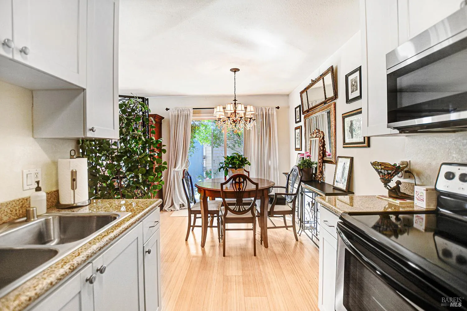 Townhouse-style residence set on beautifully landscaped grounds offers a private entrance and spacious garage for added convenience. This single story end-unit features its own private courtyard and patio perfect for relaxing, entertaining or gardening. Inside, enjoy bamboo wood flooring throughout the living, dining, and kitchen areas, complemented by granite counter tops in the kitchen and bathroom and stainless steel appliances. The serene bedroom retreat features a walk-in closet and nature-inspired views. Ideally located close to shopping, dining, walking trails and transportation.
