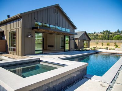 Elevated Modern Farmhouse in the Heart of Wine Country. Set against the picturesque backdrop of Wine Country, this 4-bedroom, 6-bathroom elevated modern farmhouse blends timeless design and effortless California living. Situated on 1.54 acres, the property feels both expansive and intimate - designed for entertaining, unwinding, and taking in the beauty of its historic surroundings. The sprawling home offers an open floorplan awash in natural light, top-tier kitchen appliances, custom cabinetry, and designer finishes throughout. Each of the generous bedrooms features its own thoughtfully designed en suite, offering privacy, comfort, and a touch of luxury. Outside, a resort-style pool and custom covered kitchen with dining area set the stage for year-round entertaining, all designed to celebrate effortless indoor/outdoor living. The elevated farmhouse aesthetic blends seamlessly with the transportive beauty of the surrounding historical land, creating a home that feels timeless. Every detail of this one-of-a-kind property has been carefully curated to invite you to slow down, relax, and enjoy all that wine country has to offer.