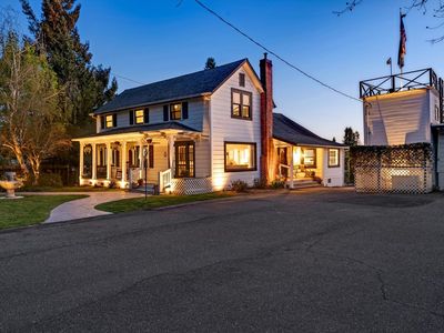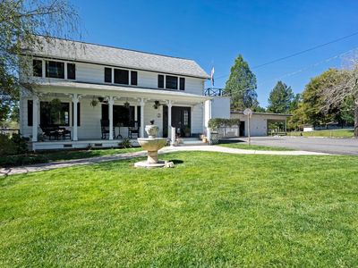 Sellers are moving due to jobs! Beautiful sprawling estate nestled on over 5 acres, offering not one, but three charming homes. The main residence, a Victorian Farmhouse, stands as the crown jewel of the property. Boasting 4 beds & 2 baths, with the primary on the main level. This beautifully crafted home features leased solar and inviting front porch, perfect for enjoying morning coffee. Adding to the allure of this property is the vintage water tower, a unique & charming feature that adds character & distinction. The several outbuildings provide endless possibilities. The cottage offers a cozy retreat with its 1 bed & 1 bath layout. Complete with its own entrance and yard, as well as a 2 car garage, this charming unit is perfect for guests or as a peaceful sanctuary. Completing the trio of residences is the rental unit with 3 beds & 2 baths. Offering a private entrance & yard, garden area, & 1 car garage, this unit presents an excellent opportunity for supplemental income or extended family living. Whether you're seeking a private oasis to call home or an investment opportunity with multiple rental options, this exceptional property offers the perfect blend of charm and multiple uses with its DA 20 zoning. Don't miss your chance to make this dream home your own!