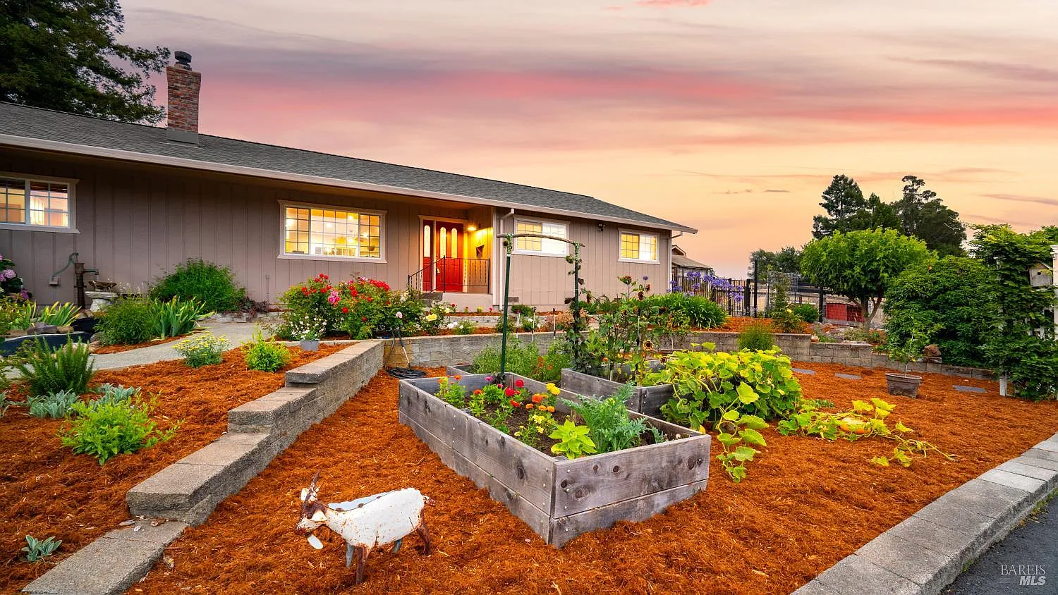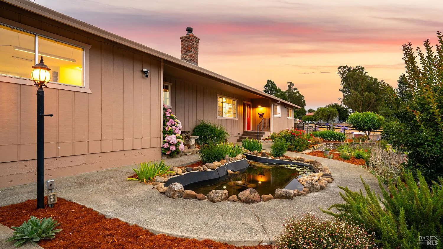 Wonderful Sonoma County country living is defined by homes like this. The tree-lined street reveals the spacious driveway and an incredible nearly acre lot. Recent landscaping provides a serene garden full of fruiting trees, blossoming flowers, raised garden beds, and a sweet pond with water feature. Pure comfort is found just inside with gorgeous flooring running throughout and the open living room, dining room, and kitchen area. Here you'll enjoy the granite countertops, a wall oven, recessed lighting, gas fireplace, additional oven range, and bartop seating. A butler pantry with additional refrigerator, laundry area, and two-car garage complete this wing of the home. The living areas include two view-filled guest rooms, a full bath, and the primary suite with large closet, French doors to a backyard deck, and sliding barn door to the bathroom with walk-in shower. Two enclosed sunrooms provide perfect areas for a tranquil workout. Explore the expansive lot with decks, soothing swim-spa primed for relaxation and exercise, and animal enclosures for the budding farmer. Even better is the barn with finished flooring, updated lighting, bonus storage room, and convenient animal feed system. Everything enjoys a serene country setting, still conveniently close to town!