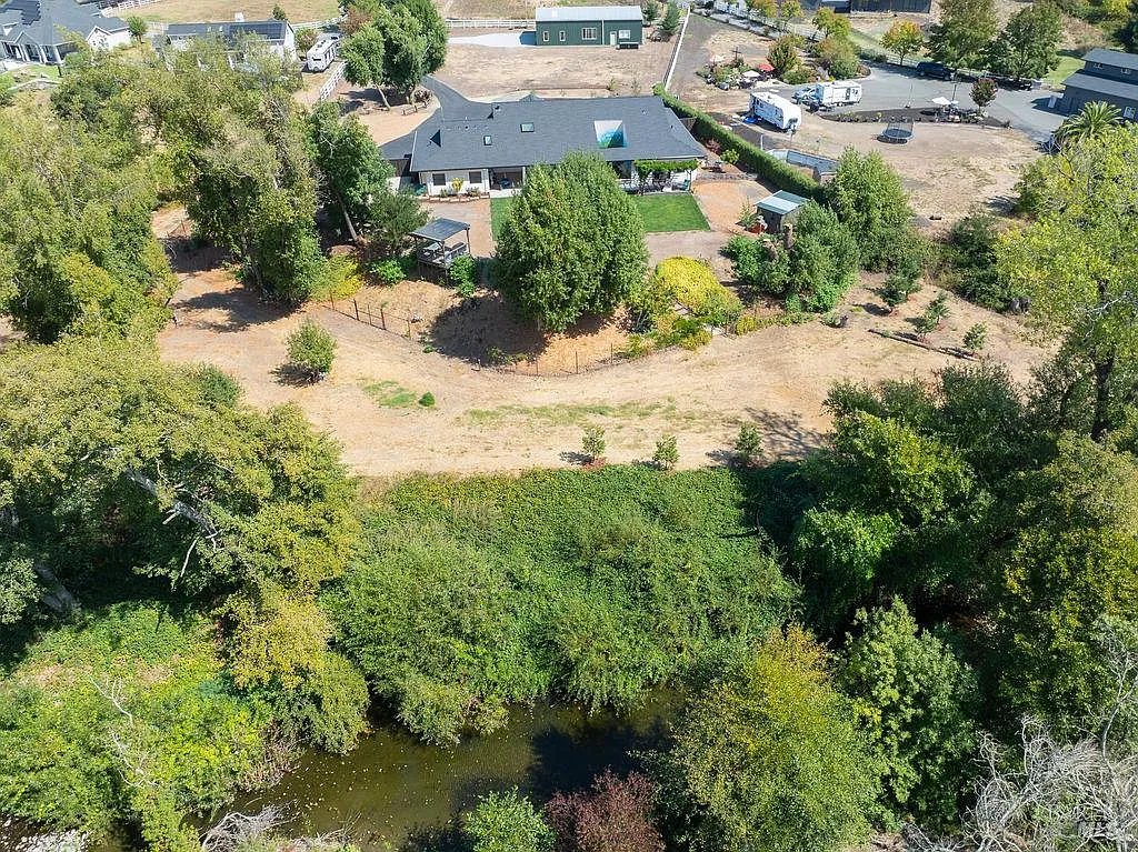 Set on 2.6 acres in the desirable enclave of Quietwater, this gated, newer-built single-level residence combines modern design with a serene creek-side setting. The open and spacious 3,683 sq. ft. floor plan offers 4 bedrooms, 3.5 baths, and a dedicated office, creating the perfect balance of comfort and functionality. Expansive windows and seamless indoor-outdoor flow highlight the home's connection to its natural surroundings. Enjoy year-round entertaining with an impressive covered outdoor living area and direct access to Mark West Creek, where you can relax and unwind in complete privacy. Enjoy the expansive rear lawn area, raised garden beds, covered BBQ area and chicken coup. A 2,400 sq. ft. shop/barn with its own office provides endless opportunities for hobbies, workspace, or storage. Located just minutes from shopping, dining, highly rated schools, and Hwy 101, this property offers both convenience and retreat. A rare opportunity to own a thoughtfully designed estate with the perfect blend of lifestyle, land, and location.