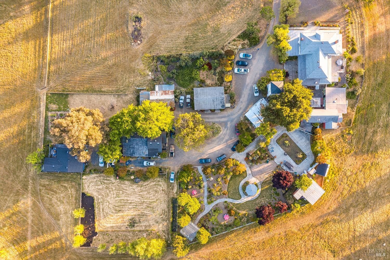 Tucked amid the rolling hills of the Petaluma Gap, Silver Penny Farm is a rare and remarkable retreat where history, nature, and opportunity converge. This 17.5+/- acre property unfolds with pastoral beauty, sweeping pastures, lush gardens, and far-reaching views, creating a setting both serene and inspired. At its heart stands a stately 4,483+/- square-foot farmhouse, offering six bedrooms and five and a half baths, gracefully preserving its historic character while inviting modern vision. Dating back to 1899, the Goldie family modernized the farmhouse in the 1970s and present owners refurbished it in 2020. Surrounding the main residence are six charming cottages, a versatile workshop, and the signature Gathering Barn, a generous space designed for connection and creativity. Permitted by Sonoma County as a retreat center, Silver Penny Farm is more than a home, it's a canvas. Solar power and a private reservoir support a sustainable infrastructure, while its coveted location midway between downtown Petaluma and Sonoma Plaza place it at the gateway of Wine Country. Whether imagined as a boutique B&B, an intimate event venue, a working farm, or a family sanctuary, Silver Penny Farm offers a singular chance to create something extraordinary.