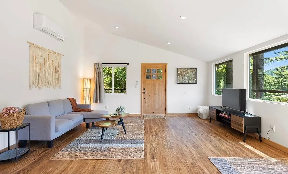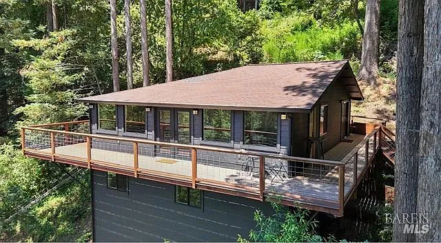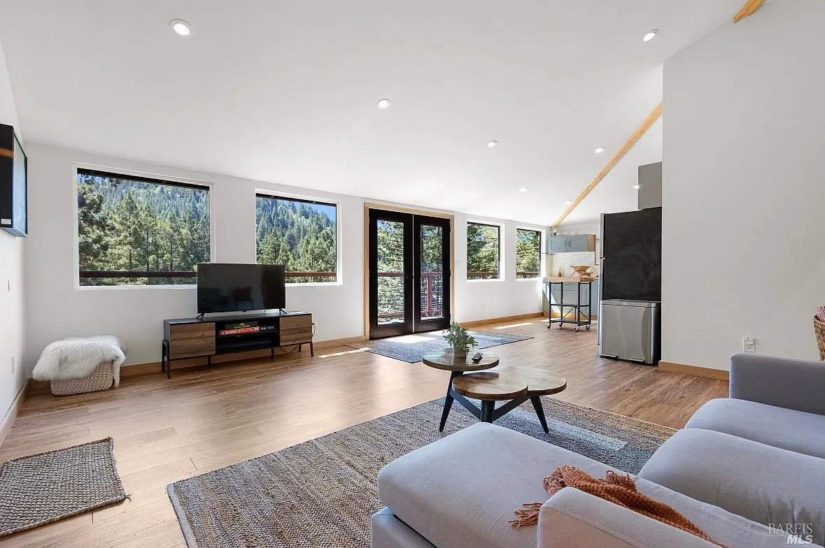 Tucked into the Guernewood Heights neighborhood along the famed Russian River corridor, this thoughtfully updated 1,770 sq ft home offers the rare combination of authentic Sonoma County character and modern, move-in-ready comfort all under a canopy of old-growth redwoods. Recently remodeled, the home has been carefully brought into the present with quality upgrades throughout: warm butcher block countertops, ceramic tile baths, cathedral ceilings, and hardwood floors that bring a fresh, elevated style to the home's timeless character. The updated kitchen is dialed in and ready for everything from weeknight dinners to weekend entertaining. Step outside and the setting takes over. The upper balcony commands sweeping, unobstructed views of ancient redwoods that rise dramatically against the sky a view that never stops giving. Below, a shaded lower patio offers a cooler, more intimate escape, perfectly suited for morning coffee, evening wine, or simply losing track of time in the quiet of the trees. The flexible lower-level space opens the door to whatever you envision a workshop, art studio, home gym, or generous storage. This is a home that holds you close but when you're ready to explore, the adventures await you: Several Russian River beaches are just minutes away, Armstrong Redwoods State Natural Reserve offers world-class hiking and horseback riding, and the acclaimed restaurants and wineries of the Russian River Valley are yours to explore at a moment's notice. Whether you're searching for a full-time residence or a weekend retreat, 17356 Old Monte Rio Road delivers the Sonoma County lifestyle without compromise.