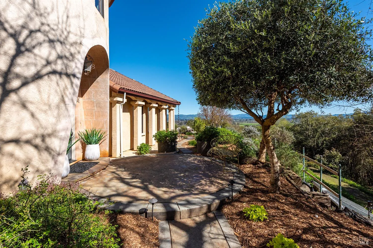 This Mediterranean styled home is located on one of the most amazing spots in Sonoma County. It is a masterpiece of home, serenity and sense of place at the end of a private lane in the coveted Vine Hill area of Sebastopol. The home sits atop a 6.12 acre knoll with sweeping, unobstructed easterly vistas from Mendocino County to Marin County and the entirety of the Mayacama range. Stunning sunrises seize the day to enjoy the California pollinator garden, raised planting beds, lounging poolside, soaking in the spa or playing a rousing game of bocce ball. The arched entry opens to a grand 2 story foyer with curved staircase to the upper level. The primary suite features a private, natural light filled bathroom and soaking tub. There are 2 additional bedrooms and a 2nd full bath on the upper floor. Solid wood doors are used and Marvin stained, wood clad windows are used throughout. The main level features a large, vaulted living room with wood burning fireplace that opens to the expansive patio / pool area. A thoughtfully designed and functional kitchen with prep island and pantry provides ease of access to the dining, living and outdoor spaces. There is a full bathroom on the main level, plus a laundry room, mud room, craft room, TV/play area and a private den/office with separate entry. At 3,142 square feet, this is a home for living and offers practical, flexible functionality. The large in-ground pool has a motorized pool cover. There is a detached 3 cars with a large work area and storage. The garage is connected to the main house via a loggia. The home is served by a mutual water company, which is managed by 29 homeowners and a written, recorded road maintenance agreement is in place. It is just an easy 9 minute drive to Hwy. 101 and the north side of Santa Rosa, yet feels like a million miles away from the daily hustle and bustle. This is one of the best opportunities in Sebastopol and the scenic, stunning Vine Hill / Russian River Valley of Sonoma County.