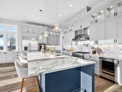 Don't miss this truly exceptional Healdsburg estate, offering gated, private living on one of the most coveted roads in the area. A private bridge crosses a seasonal rocky creek, leading you into a serene, park-like setting where an enchanted pond with swimming and boat docks is framed by mature trees and a fenced orchard garden. Nearby, a newer RV creates the perfect hub for weekend campouts, swimming, barbecues, volleyball, and lakeside relaxation. Continue up the drive to the recently built modern farmhouse, completed by local builders in 2023. Inside, soaring ceilings and expansive walls of glass capture breathtaking, uninterrupted panoramic views from every room stretching across the Mayacamas, Mt. St. Helena, and rolling vineyard-lined valleys. The main residence features four bedrooms and three-and-a-half baths, a stunning great room, expansive outdoor decks, and deep garages with a large motor court ideal for car enthusiasts and entertainers alike. An adjacent ADU offers two bedrooms and two baths, its own fireplace, and equally impressive views, positioned above an expansive six-car garage and workshop. Set on approximately 100 acres with thoughtful improvements throughout, this rare wine country offering combines privacy, recreation, and refined living. A truly special property awaiting its next discerning buyer!