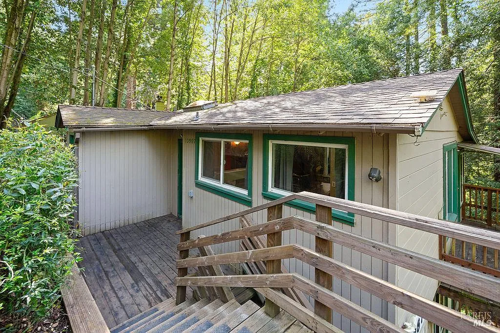 Secluded and charming, this 2 bed, 1 bath home boasts an open floor plan with sloped forest views and dappled sun exposure. Cozy up by the pellet stove or enjoy the updated kitchen and bath, while efficient new electric heating and cooling system keep you comfortable year-round. A large storage area with washer and dryer adds convenience, and with only one home on this quiet stretch of Terrace Drive, you'll love the peace and privacy this retreat offers. Great for year round living or a vacation getaway.