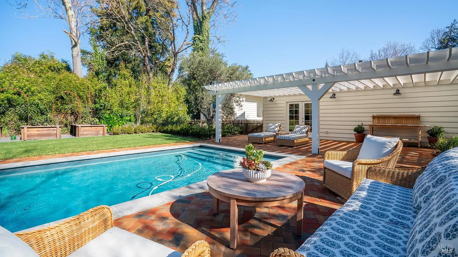 Timeless elegance meets modern Wine Country living in this beautifully reimagined 1937 residence, just moments from downtown Healdsburg and set on an expansive +/-.33-acre lot. The home offers four bedrooms and three full baths, including a spacious main-level primary suite with a fireplace, two walk-in closets, and a spa-like bathroom. The living room is perfectly sized and would transform to any aesthetic - it's that good. The kitchen is timeless, with a gas range, island, marble counters, pantry, and breakfast area. The feel is gracious and updated, with a nostalgic appeal, featuring a wonderful basement, sprawling bedrooms on the upper level, and a covered porch. It's the modern appeal that sets it apart, though, with thoughtful updating and everyday needs met. The backyard is a private retreat. A sparkling in-ground pool is framed by lush landscaping and raised garden beds, a trellised dining area, and a built-in barbecue. The large detached office provides flexibility and could be a recreational room, art studio, or potential ADU. Just blocks from the Healdsburg Plaza, you'll enjoy the beloved restaurant scene, fun wine tasting, summer concerts on the square, and our weekly farmers' market. A true Healdsburg gem.