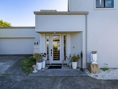 This custom contemporary home showcases the best of Bodega Bay! From the entry, ascend the floating staircase to the main level, featuring panoramic views of the Pacific. High-end upgrades include a smart-speaker system, custom restoration hardware fixtures, & electric fireplaces. The kitchen offers an oversized quartz waterfall island, built-in stainless steel appliances, & granite backsplash. A convenient half-bath completes the level. On the lower level are three bedrooms, each with sliders onto a private patio. The primary suite includes a walk-in closet & fully remodeled bathroom with soaking tub, large rain fall shower, and custom marble tile. Also on this level are a full guest bathroom and 2-car garage with storage/laundry. The exterior offers multiple seating areas, a hammock with views of the 11th hole, and a Tesla EV charger. Pristine Bodega Harbour amenities are close by - including the clubhouse, restaurant, gym, sauna, heated pool, bocce/tennis/basketball courts, & more. Incredible beaches, tasting rooms, & seafood are minutes away. This home has lived as a full-time residence, weekend getaway, & profitable Airbnb. Thoughtfully upgraded with consideration to preserve coastal tranquility, this is a rare opportunity to slow down & enjoy the simple things, luxuriously!