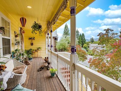 Step into timeless elegance with this custom-built Vintage Victorian home, nestled in the heart of Cloverdale! Built in 1995, it captures all the charm of a bygone era while offering modern comfort. This spacious residence boasts three bedrooms, two full bathrooms, and two half baths with sprinkler system throughout, along with classic features like a welcoming front parlor, French doors, crown molding, custom tile work, and gleaming hardwood floors. Enjoy relaxing evenings on the wrap-around porch or make the most of the finished great room perfect for a home office, workshop, or entertainment space. An electronic gate leads to beautifully terraced and landscaped grounds, spanning over an acre of lush gardens with sweeping views of the city and surrounding hills. Conveniently located near downtown, shopping, dining, and everyday amenities, this enchanting home blends old-world charm with everyday ease. Come experience the comfort and character of this Cloverdale gem!