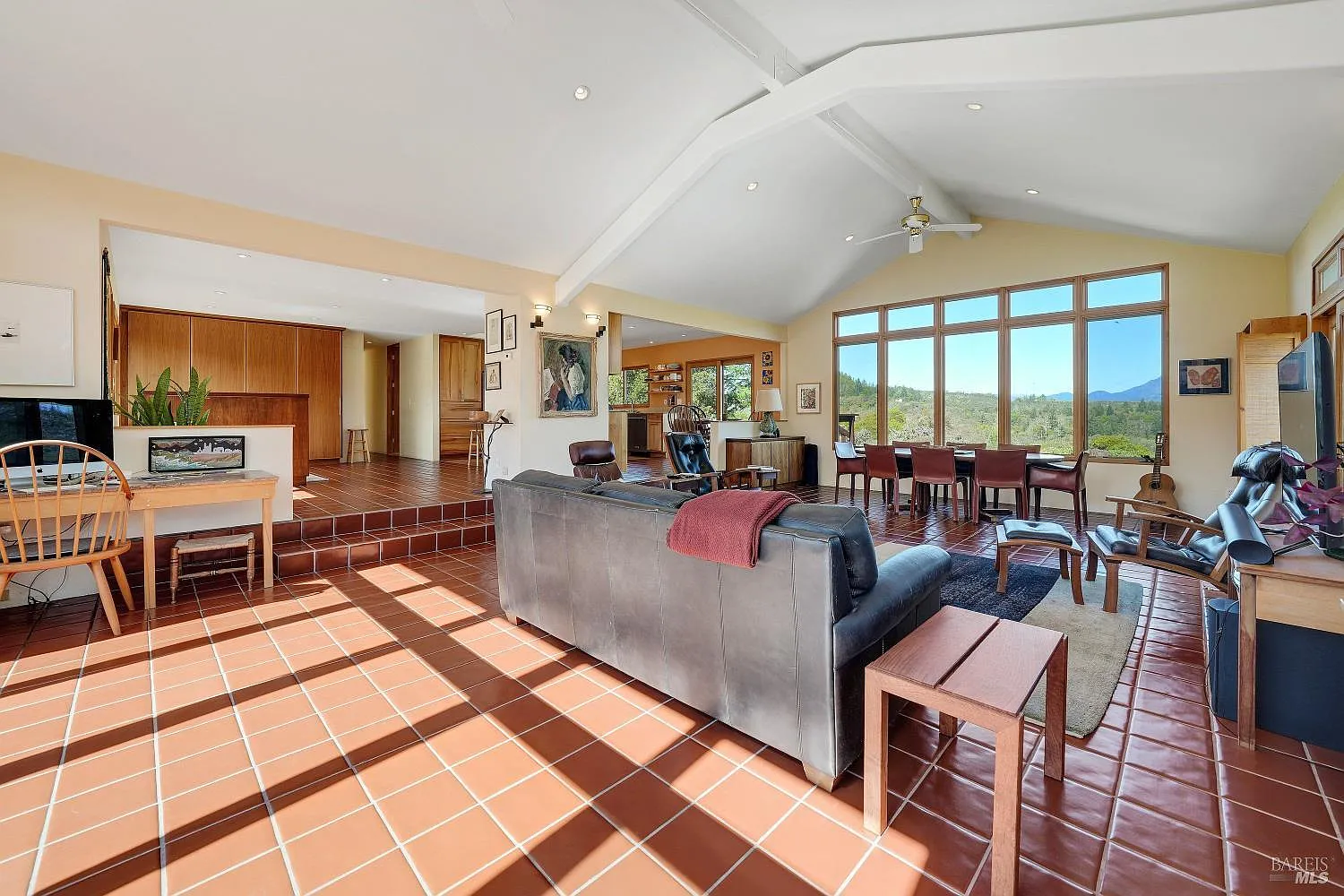 Set in the western hills just above Calistoga, 5809 Sharp Road offers a rare blend of Wine Country views, privacy, and opportunity on a 2.2 acre parcel. Though the property carries a coveted Calistoga address, it sits just across the Sonoma County line, an advantageous location where short-term rental permits may be possible, subject to county application and approval. The three-bedroom, two-bath residence is oriented to capture sweeping views of Mount St. Helena, with the landscape unfolding dramatically beyond the home's main living spaces. A generous family room with vaulted ceilings creates an airy gathering place where large windows frame the mountain backdrop, while the open-concept kitchen connects seamlessly to the living areas, enhancing both the sense of space and the home's natural flow. Thoughtful improvements contribute to both comfort and efficiency. The home is equipped with solar power and a Tesla battery system, complemented by new multi-pane windows, resulting in notably low annual energy costs. A prolific well provides abundant water, supporting both the residence and the surrounding landscape with ease. Practical features add further appeal, including four spacious garage bays (ideal for collectors, hobbyists, or those seeking additional workspace) with ample room to accommodate a workshop or storage for Wine Country lifestyle pursuits. Bordered by larger surrounding parcels, the property enjoys a peaceful sense of seclusion while remaining just minutes from downtown Calistoga's celebrated restaurants, tasting rooms, and spas. Complete inspections have been conducted, and the property is offered as-is, presenting a compelling opportunity for its next steward to update, personalize, or simply enjoy the remarkable setting. With inspiring mountain views, flexible living spaces, strong infrastructure, and potential for short-term rental use, 5809 Sharp Road represents a distinctive foothold in the northern Napa Valley lifestyle.