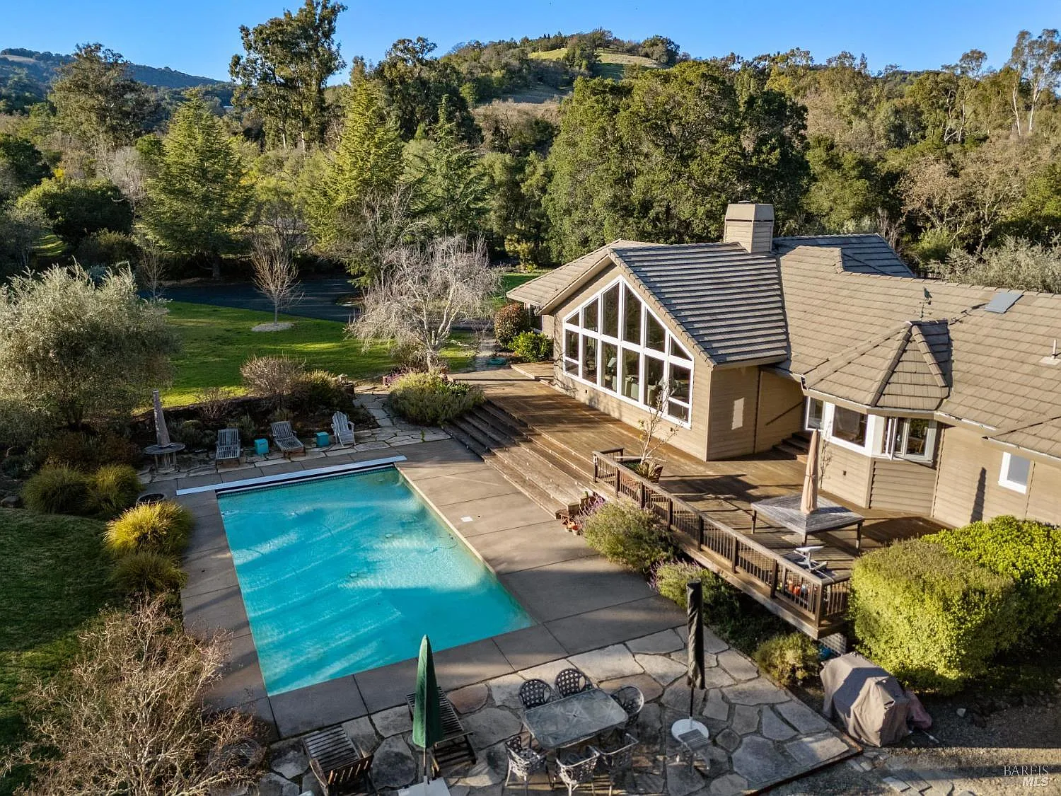 Welcome to your dream oasis! This stunning single-level home offers 3 bedrooms, 2.5 bathrooms, and a spacious 2 car garage. Nestled on an expansive +/- 2.89-acre level lot, this property is a true sanctuary, perfect for those seeking tranquility and the potential for a horse property. Step inside to be greeted by an abundance of natural light that floods through large southern windows, accentuating the grandeur of the cathedral ceilings. The open floor plan seamlessly connects the living areas, creating an inviting atmosphere for both relaxation and entertaining. The heart of this home is the gourmet kitchen with a breakfast nook, which flows effortlessly into the dining and living areas, making it ideal for hosting gatherings. Beyond the interior, a swimming pool awaits, offering a refreshing escape. The property is a horticulturist's paradise, featuring a variety of fruit trees including figs, peaches, apples, persimmons, pomegranate, lime, lemon, orange, grapes, pears, and olive trees. A seasonal creek adds to the charm, providing a serene backdrop and enhancing the natural beauty of the landscape. Plenty of room to expand on this relatively flat parcel. This property is conveniently located just under 4 miles from the Downtown Sonoma Plaza. New Price.