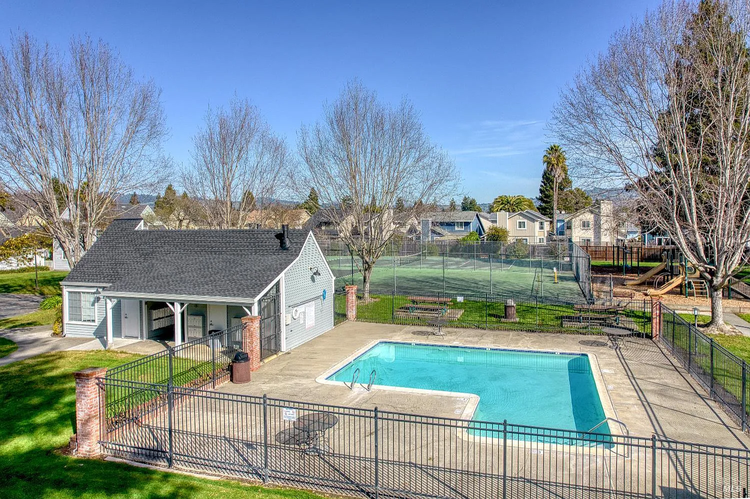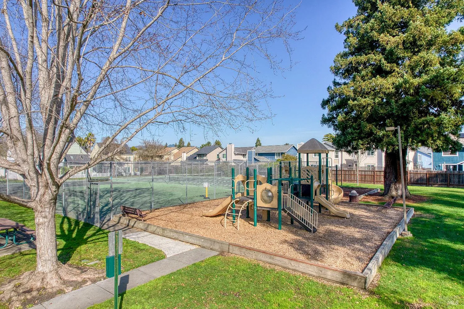 Welcome to 8356 Windmill Farms drive! This 3 bed, 1.5 bath home offers plenty of living space in a sun-drenched development. The two story layout allows for privacy, while the large windows downstairs help to bring the outside - and the natural light - in. The home itself backs up to the greenery in the Windmill Farms development, giving you ample access to the tennis courts, playground, and pool. The dining area gives you direct access to the back patio as well, creating an seamless flow of indoor/outdoor living. Discover the perfect blend of convenience and community in the heart of Cotati. Ideally situated just moments from the SMART train station, this home offers a dream commute and effortless access to the best of Sonoma County. Living here means enjoying a resort-style atmosphere right at your doorstep; you can spend your weekends lounging by the community pool, playing a match on the tennis courts, or strolling through the lush greenbelt paths. Come take a look at this combination of convenience, comfort, and affordability!