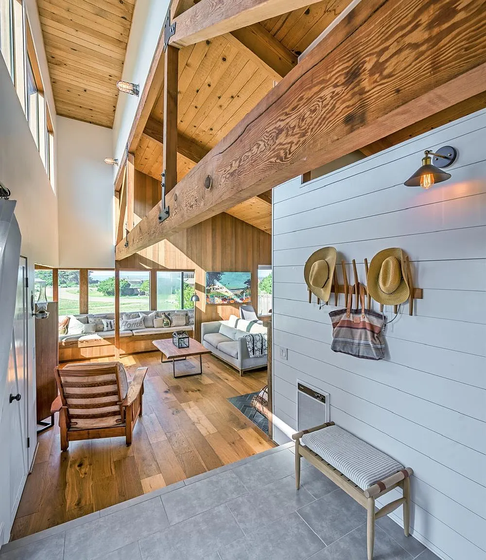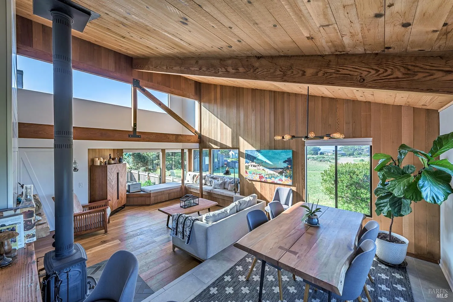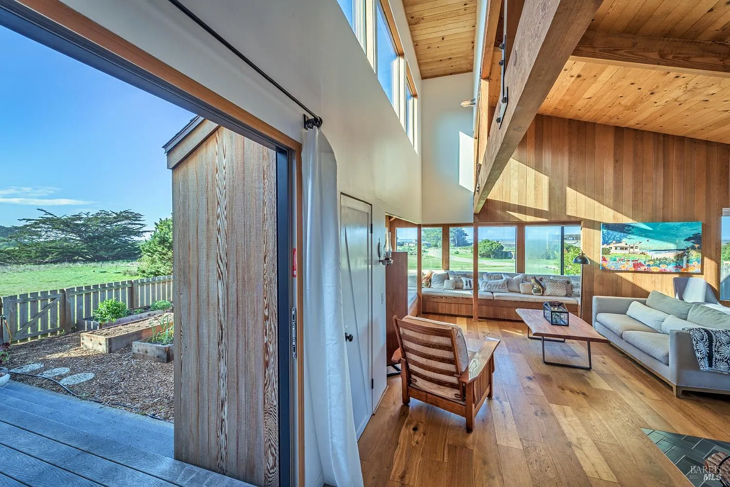 Impeccable, West Meadow, 2 bed/2 bath home with an additional fun loft space designed by Obie Bowman, FAIA, with ocean/meadow views plus detached 2-car garage with separate office and sauna room. The separate office/studio space is the ideal space for someone working from home. This architectural gem was renovated with a refreshed modern feel. Recent upgrades since 2017 include new flooring, shiplap walls, barn slider doors, kitchen appliances, high-end fixtures/finishes, blinds & paint. Living room features hardwood floors, open beam ceiling, built-in window seat nook and wood burning stove with Heath tile hearth. Dining room adjoins kitchen offering stainless steel appliances and butcher-block countertops. Primary bedroom features completely remodeled en-suite bathroom. Guest bedroom has remodeled guest hall bathroom. The loft with panoramic views offers a retreat away from living spaces with a great window seat for napping, reading a book or just TV lounging. The enclosed courtyard is a great spot to relax after using the outdoor hot tub or the indoor sauna. The ocean view garden has raised container beds with lots of space for growing your own food and flowers. Some furnishings included in sale. Unit 28 and Masthead Reach leads to all the best beaches incl. Walk on Beach, Tide Pool beach, the seal rookery and Shell Beach. One Eyed Jacks is a short stroll or bike ride away with BBQ area, play ground, Petanque/bocce court and just space to hang out along the cool hedgerow. Several new windows were installed in 2025. This house shows beautifully how classic Sea Ranch architecture meets modern design!