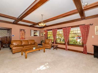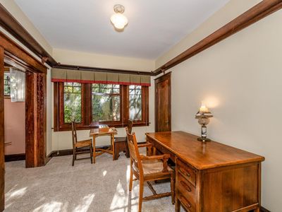 Very special 1915 Craftsmen in the Historic McDonald District. This approx 3000 sq ft home with 4 bed, office and 2 full bath built upon a corner 6,750 sq ft lot exudes period detail. Elegance not to be compared. Open beam ceilings in living room as well as the formal dining room. Built in cabinetry. Downstairs Primary Bedroom offers an option for a Primary bath. Updated bathrooms with stylish detail. Kitchen was updated with custom wood counters, cabinets, stainless steel appliances and flooring. Period style light fixtures, updated windows, Custom cabinets. There is wood flooring under carpet to bring back to the beauty it deserves. Storage galore in upstairs closets. Finished 2 car garage, private front and back yards. Walking distance to restaurants and downtown.