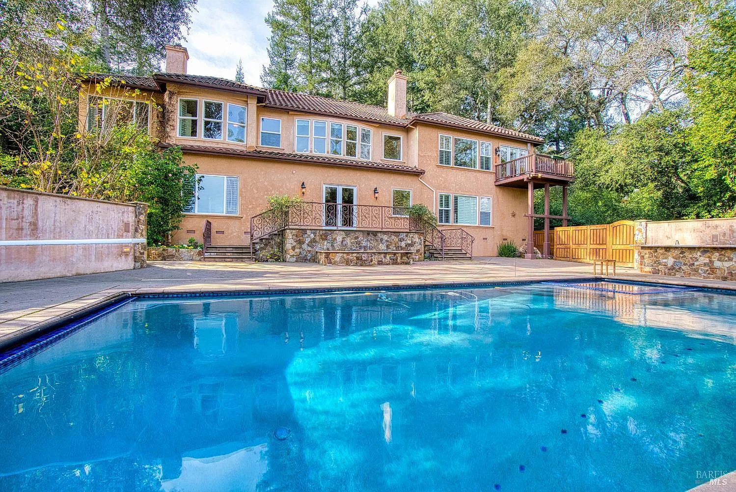 Nestled in the scenic Brush Creek area behind an impressive iron gate on 1.36 acres and designed by Farrell and Faber, this spectacular estate features luxurious amenities: home spa room; wine cellar; hardwood floors; formal dining room; elegant living room w/fireplace; family room w/fireplace; sound system; private heated inground pool/spa; private tennis court & tennis hut w/bathroom and storage room; the majestic orchard offers multiple fruit trees: apple, fig, persimmon, pomegranate, pear, apricot and peach along with olive, citrus and roses. The gourmet kitchen features granite counters, Thermador 6‐burner range, double oven, warming drawer, GE Monogram refrigerator, Bosch dishwasher, and butler pantry. The primary suite offers a sitting area w/gas fireplace, grand bathroom features granite counters,2 sinks, a jetted tub, walk‐in closet of 110 SF. The downstairs features a huge entertainment room with kitchen w/ granite counters, refrigerator, dishwasher, built-in microwave; huge home office w/ walk-in closet; home gym; and 2 bedrooms and 2 bathrooms downstairs. The large wine cellar offers a spacious area to have fine dining for 8, wine tasting room, temperature controlled rooms, plus 2 storage rooms to make/store wine. Located just 5 minutes from Oliver's.