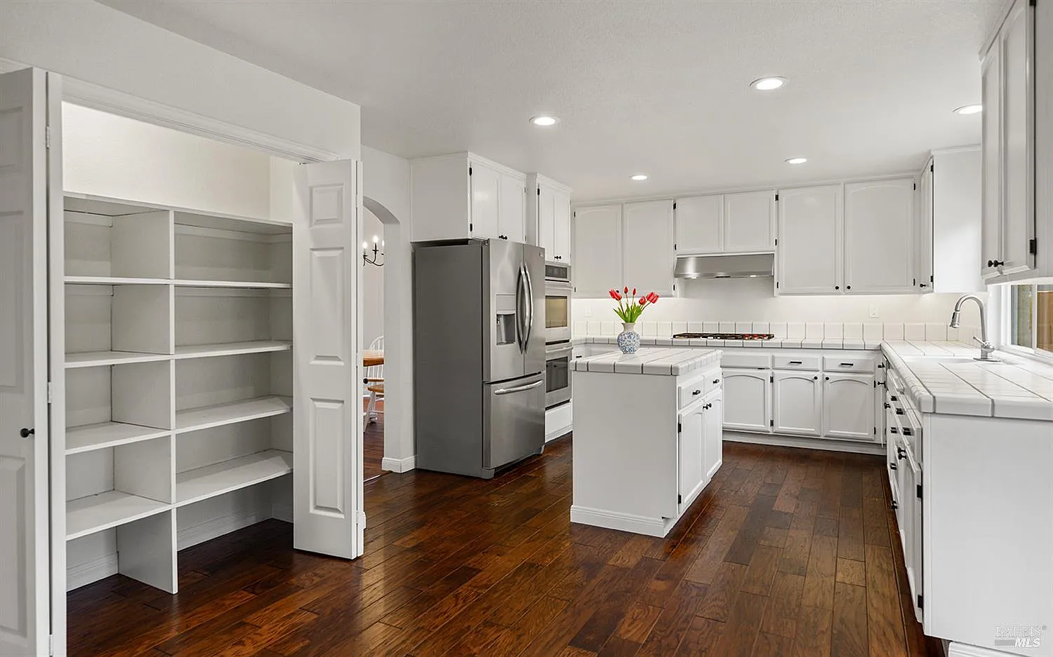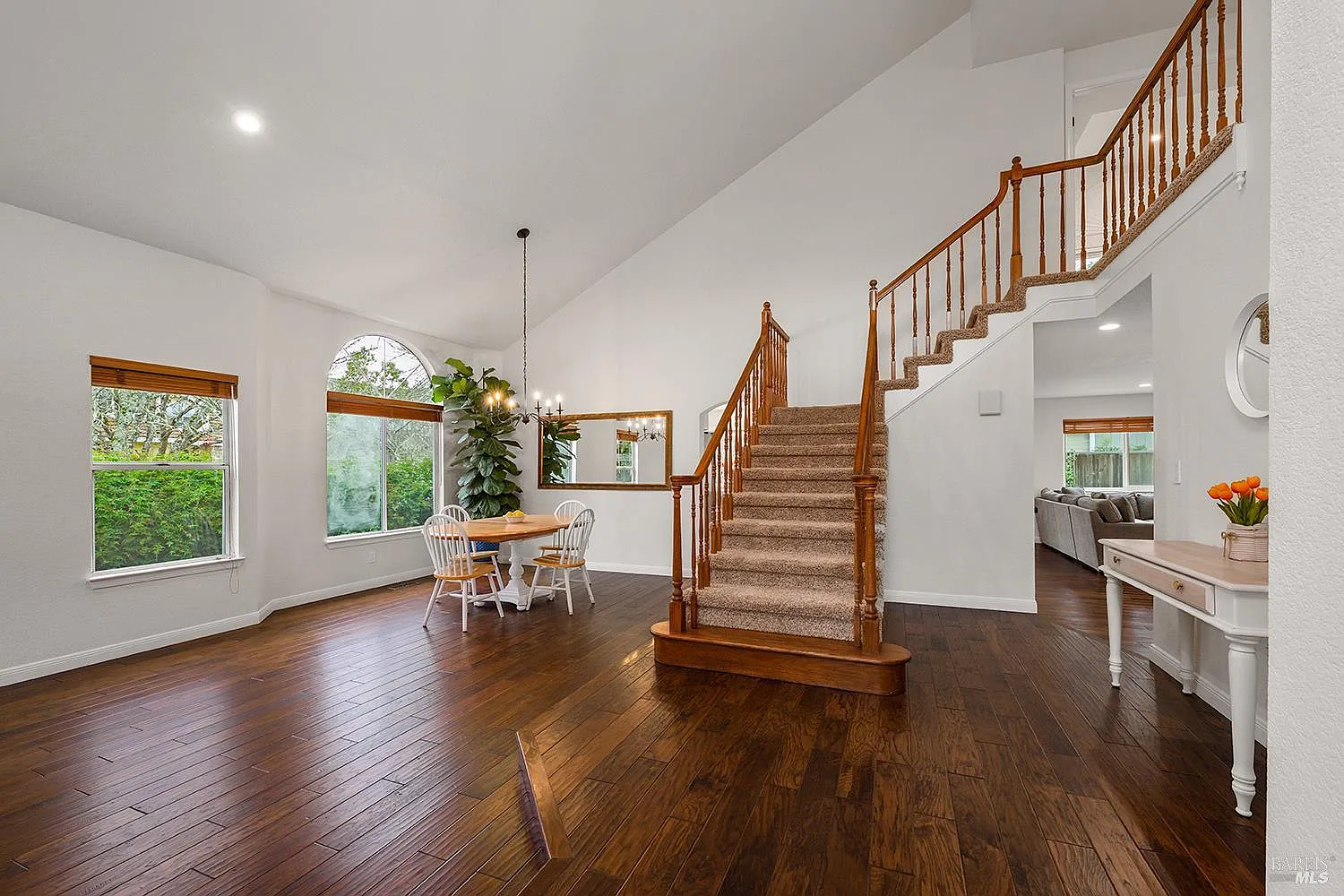 Welcome to this beautifully updated 4-bedroom, 3-bath home in the highly sought-after Brush Creek Meadows neighborhood in Rincon Valley. Featuring rich hardwood flooring and smart home technology, this home blends modern comfort with timeless style. The open-concept floor plan is wonderful for everyday living and entertaining, with a convenient downstairs bedroom and full bath, ideal for guests or multigenerational living. The spacious kitchen includes a WOLF gas range and opens seamlessly to the main living areas, where a cozy fireplace with a newly installed gas insert creates a warm and inviting atmosphere. Additional features include air conditioning and a whole house fan for enhanced year-round comfort. Step outside to a beautifully hardscaped backyard complete with a hot tub and fresh landscaping, perfect for relaxing or hosting gatherings. A great location with access to highly rated schools, shopping at Montgomery Village, dining, and the scenic trails of Annadel State Park. This corner lot home sits in a cul-de-sac development with no pass-through traffic, offering the ideal balance of convenience and serene neighborhood living. A rare opportunity in one of Santa Rosa's most desirable neighborhoods.
