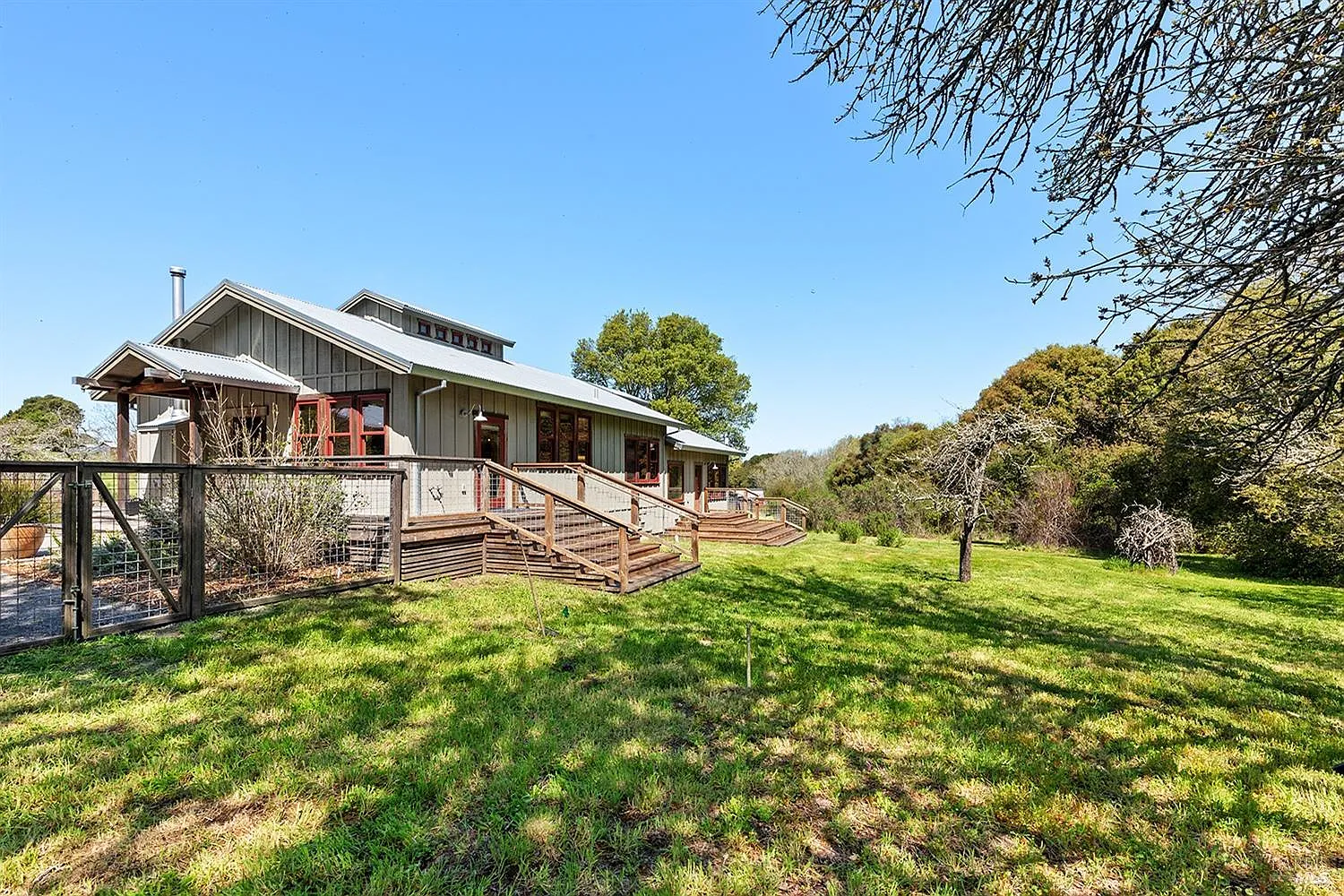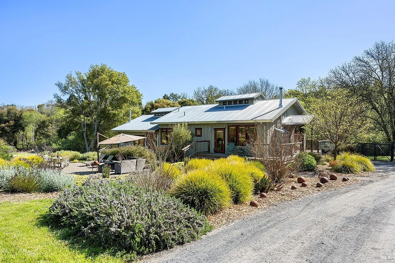 THE LAND - 11 acres of prime Sebastopol earth. Ancient apple orchard, Porcini mushrooms, creeks, vineyard & riparian views, intimate privacy, wildlife abound, sublimely quiet. Ideal for farm/garden projects or peaceful respite. THE RESIDENCE- A "High End" distinctive, green-built farmhouse (2015) that was purpose-designed as a modern couple's sanctuary: two autonomous, self-contained living zones that can be enjoyed separately or opened up to function seamlessly as one home. The residence offers two kitchens, two bedrooms, two living rooms, two baths, and two private entrances providing flexibility for independent living, a private guest suite, in-law space, or a potential rental, while remaining a cohesive single-family home when desired. The home's modern-rural aesthetic is defined by high ceilings, open-plan living, and two cupolas providing glorious natural light. Heritage wood floors salvaged from a Washington grain silo set a striking tone throughout, durable enough for farm life while deepening in character over time. Bedrooms are equipped with EMF shutoffs. LED lighting reduce power consumption and extraction fans serve as cooling aspects in summer. Built with ultra-high-quality 2 x 6 construction by a local artisan builder, the house is exceptionally insulated with double-paned, wood-clad windows and radiant floor heating controlled by Nest thermostats, ensuring warmth and comfort through winter. Two county-approved wood stoves add ambiance on stormy nights and serve as reliable backup heat. LIFESTYLE- Completely OFF GRID (except cable for wifi) means primarily self contained offering freedom & independence from utility companies and enduring power outages, plus significant cost saving not having an electric bill. The property is connected to Comcast Cable for High Speed Internet access! Great Well and 7,500 gallons of water storage ensures water bounty continuously. An exceptional, one-of-a-kind, sustainably built sanctuary offering privacy, flexibility, and beauty where land, light, and thoughtful design create a rare opportunity for independent living and enduring stewardship in West Sonoma County.