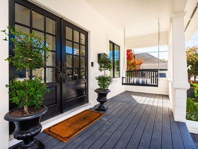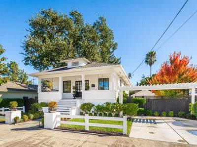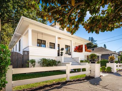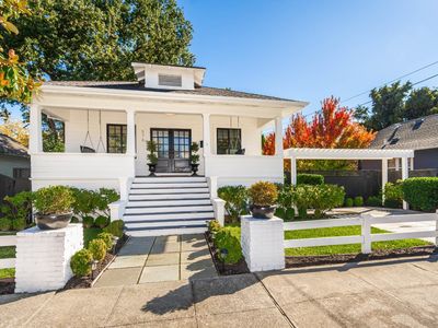 Experience the next level of downtown Napa living, Where Classic Architecture and Contemporary Living Converge - 576 Patchett Street where timeless Colonial Revival architecture meets inspired contemporary living in the heart of Napa. This thoughtfully curated single-level 2-bedroom, 1-bath residence offers a seamless blend of classic charm and modern design. An inviting elevated front porch with west-facing swings sets the tone for relaxed evenings. Inside, the chef's kitchen dazzles with a center island, gas range, stainless steel appliances, and walk-in pantryflowing effortlessly into a sun-drenched great room with views of the lush backyard. A cleverly integrated office and wide-plank wood floors enhance the home's functionality and style. Step outside to a beautifully landscaped patio with a gathering table and bocce courtperfect for entertaining or peaceful retreat. A cozy fireplace with hearth anchors the living space, radiating warmth and connection. With a workshop, generous basement, and a coveted location near Fuller Park and Downtown Napa's vibrant scene, this home is a rare blend of elegance, comfort, and lifestyle.