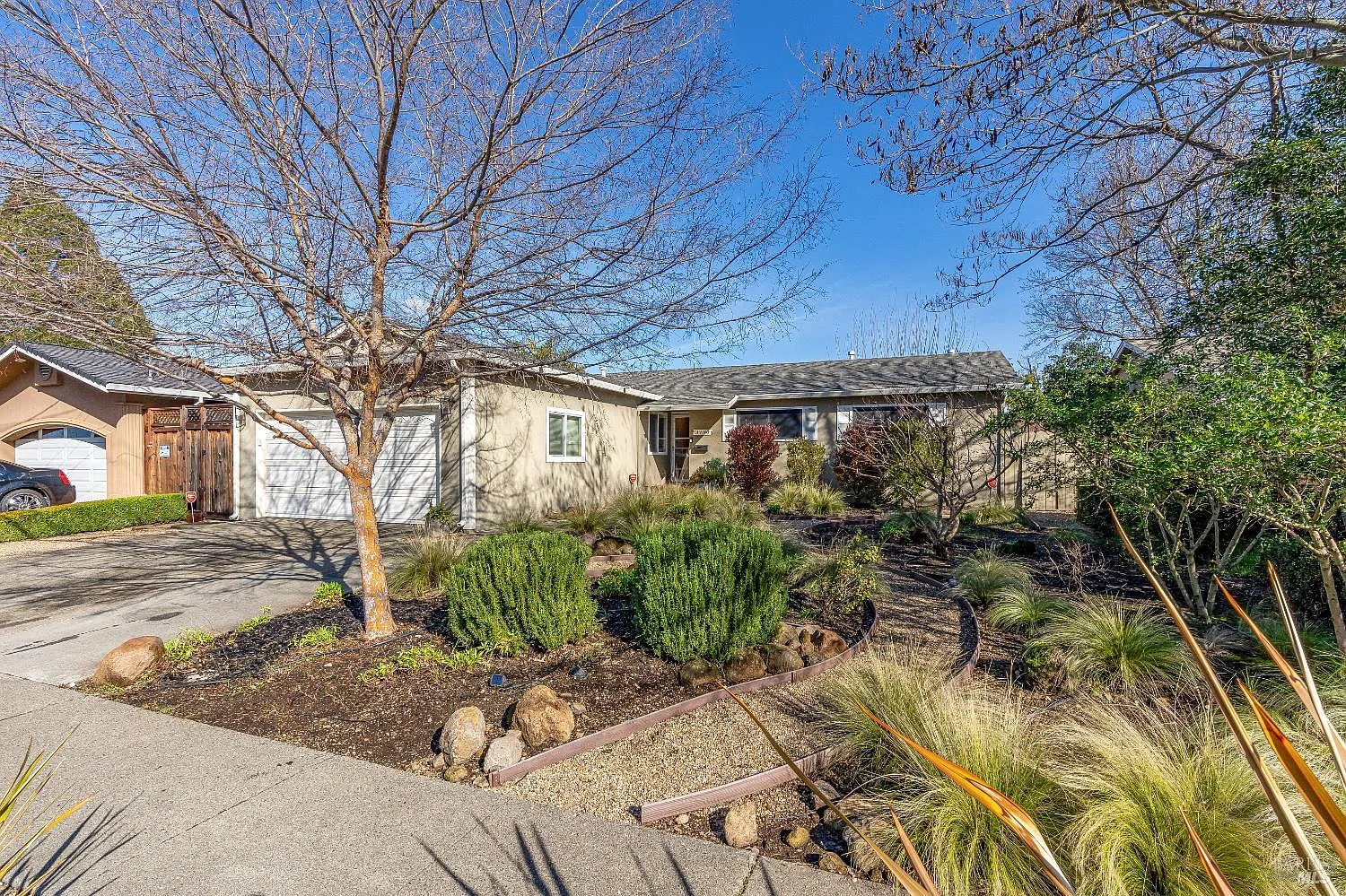 Turnkey, single-level residence in desirable North Napa offering three bedrooms and two bathrooms with a thoughtfully designed floor plan. Interior spaces include a welcoming living room, formal dining room, family room with fireplace, and a breakfast nook, all complemented by new carpet and warm wood flooring. The updated kitchen features refreshed cabinetry, stainless steel appliances, and granite countertops, while the expanded primary bathroom adds comfort and functionality. Dual-pane windows and a high-efficiency furnace and air conditioning system enhance year-round comfort. Both the front and rear yards have been updated with serene, low-water landscaping and custom garden design, creating a private and peaceful outdoor retreat. A well-balanced home offering refined updates, excellent flow, and effortless North Napa living.
