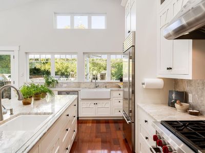 Stroll to Main Street and enjoy world-class Napa Valley Living. 1430 Stockton is more than a home - It's a Lifestyle! What could be more inviting than a home that reflects your personality, taste, and values with bespoke perfection? Nestled on St. Helena's prestigious westside, 1430 sits gracefully in a charming neighborhood beneath a canopy of mature trees. A welcoming front porch and artisan entry open into a vaulted great room bathed with natural light from oversized picture windows. Thoughtfully designed with soaring ceilings and a flowing layout, this refined home features two luxurious ensuite bedrooms with impeccably appointed baths and custom walk-in closets. A third bedroom and full bath offer flexibility for guests or a home office. At the heart of the home is the expansive chef's kitchen, featuring a striking marble island anchoring the open layout. Distinct yet connected living and dining vignettes create a harmonious flow, perfect for both relaxed living and elegant entertaining. Step outside to a pergola-covered porch with undermount Ipe decking and built-in BBQ ideal for al fresco evenings. Just beyond, you will find beautifully finished guest quarters and a two-car garage, discreetly tucked behind an automatic gated driveway. Elevate your expectations!