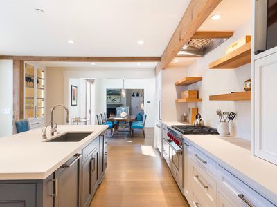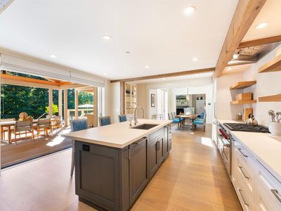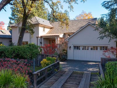 Situated just beyond the downtown core of St. Helena, this extensively updated residence offers a rare balance of privacy, scale, and architectural refinement. The home is oriented toward the rear of the property, where a series of outdoor spaces unfold, including multiple patios, a bocce court, mature redwood surroundings, and a resort-style saltwater pool. Despite its proximity to town, the setting remains enclosed and notably quiet. Interior spaces are defined by a well-considered floor plan, quality materials, and strong natural light. The kitchen serves as a central gathering point, featuring premium appliances, substantial storage, and direct connection to adjacent living and dining areas. A nearby temperature-controlled wine room provides both functional storage and visual interest. The primary suite is located on the main level and includes dual walk-in closets, a seating area, and a generous en suite bath. An additional office or den on this level allows for flexible use. Vaulted ceilings, skylights, expansive windows, and pocketing glass doors create a consistent relationship between interior spaces and the outdoors. The upper level includes three guest bedrooms and two bathrooms, offering comfortable accommodations for family and guests. Located within minutes of St. Helena's restaurants, wineries, galleries, and boutiques, the property offers a composed residential setting with convenient access to downtown's amenities.