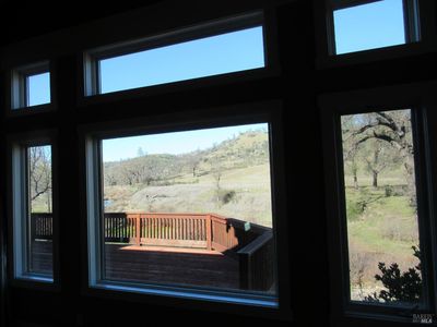 This home is located in beautiful Pope Valley, half an hour's drive from the heart of Napa Valley, and provides 3000 sf of living area with four bedrooms, a living room with high ceilings and exposed beams, a two-way stone fireplace, a chef's kitchen with a pizza oven, and a flex room with a wet bar and half bath. The primary bedroom is delightful, featuring an attached office/sitting room and a separate and spacious en-suite area with closets, a freestanding tub, and a tiled walk-in shower. Throughout, the flooring is sandstone tile and Australian Cypress, a beautiful and enduring combination. The built-in cabinetry is solid wood, custom black walnut - it has a sleek grain and pairs well with the modern SS appliances granite counters. The Subzero wine refrigerator offers easy access to your favorite selection. The home was built in the mid 1950's and rebuilt in early 2000's by a local custom builder. It is located next to the wildflower preserve so every spring season is a joyous discovery of colorful blossoms nearby! Enjoy the views of the meadows and hills from the rear deck, where you can grill, entertain, and enjoy gatherings during the fantastic shoulder-seasonal weather. The deck provides mountain and valley views, and the sounds of the creek that runs through the property. The expansive 26-acre property is a nature lover's dream, featuring mature oaks and pines that provide shade and beauty, a tranquil creek that flows through, and a hand-laid river rock bridge. A large flat area is great for horses and farm animals, with room for a barn and equestrian activities, if desired. Next to the house there are raised garden beds, ready for any gardener to enjoy producing their own meals. An owned solar system and a Generac generator keep you self-sufficient, owner says there are no PG&E bills to bother with! Don't miss the spa and pool area, completely fenced in and ready for summer splashing and relaxation. This property is two separate parcels and may possibly be adjusted so that you can sell one and keep the other, reducing your cost for the house parcel. (Check with Napa County). Services and shopping are 15 minutes away. Enjoy the peace of rural life while being conveniently located within a scenic drive of the Napa Valley!