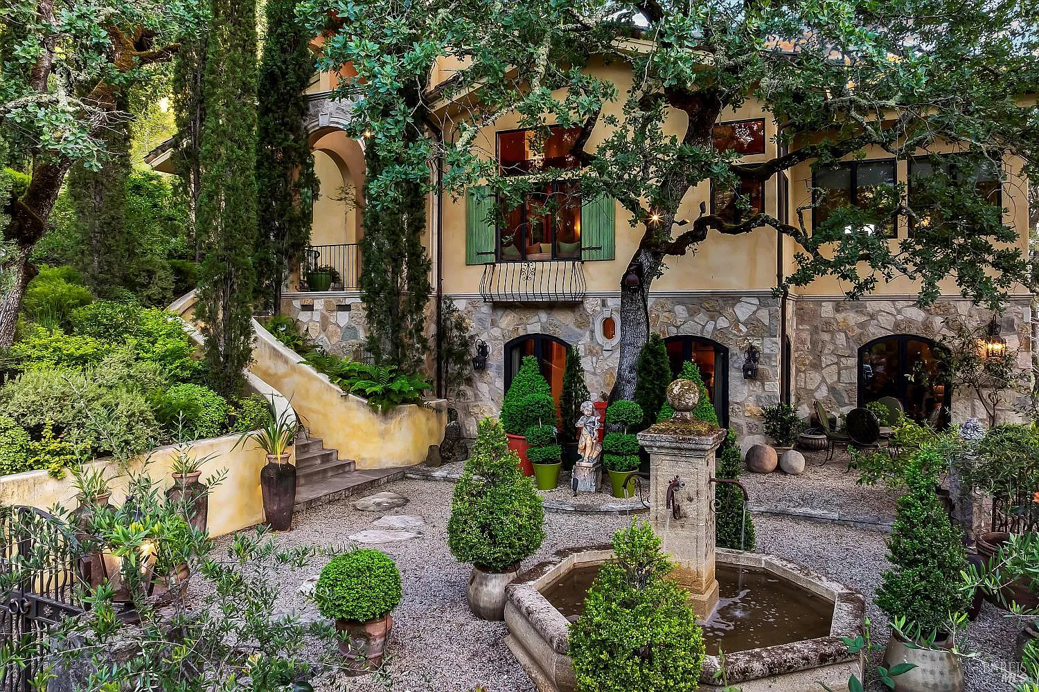 Gated estate minutes from downtown Calistoga with gorgeous views over the valley, the hills beyond, and 500 premium Cabernet vines at your doorstep. 120 Acres with a year round creek, multiple seasonal waterfalls & creeks. Italian cypress line the drive leading to the gated courtyard with Provencal fountain. The glass front door opens to golden light & soaring ceilings. The entire home shimmers with warmth & color. The kitchen, dining, and living great room has vaulted ceiling, huge open beams, art glass lights, glowing pine floors, fireplace and a wall of windows that frame the view and the sparkling pool. The home is filled with accents such as Venetian plaster walls, hand painted tilework, antique iron hardware, and artistic fixtures. The kitchen offers a huge island, Wolf range with custom hood, warming drawer, pantry and a lovely window seat to curl up with your morning coffee. The primary suite is romantic with sunset views, rose framed balconette, and French doors to a private patio with fountain. Entertaining is a delight on the back patio with swimming pool, fireplace with antique mantel, outdoor kitchen & tucked on a private terrace is a built-in sitting area by the stone spa with sunset views. Downstairs is a spacious guest suite that opens to the courtyard. The inviting family room with fireplace and full bar where you know a lot of fun will happen! It opens out to a covered patio with views of the sunset. Just in case you're feeling ambitious, theres a convenient gym. Gather guests for a picnic beneath the shade sails by the creek and listen to the frogs around the pond framed by cottonwood trees and the fruit orchard. The natural beauty combined with obvious love for the home and estate make this a very unique and special offering.