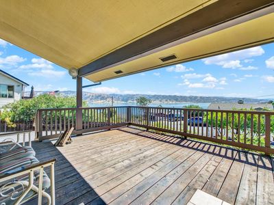 Craving a getaway from the city, a peaceful place to call home, or the perfect vacation retreat? Welcome to Berryessa Pines where you are greeted by breathtaking views and comfort at 1090 Blue Ridge Dr. This nostalgic, single-story home offers nearly 1,900SF with 2 spacious bedrooms, 2 bathrooms, fireplace and 1 wood-burning heat stove, 2-car detached garage on a sizeable lot. The inviting and spacious living room features a fireplace adjacent to the eat-in kitchen which has generous counterspace, plenty of storage, refrigerator, dishwasher and electric stove/oven. The primary suite includes an ensuite with shower stall and abundant closet space. The expansive family room is complete with a fireplace, wet bar, 2 patio doors and sweeping views of Lake Berryessa. Extra storage in the closet abounds with a dedicated pantry, washer, dryer and freezer. Enjoy outdoor living on the deck where mesmerizing lake views set the stage for relaxation or gatherings. The property also features a half-moon driveway plus a long private driveway for potential RV parking leading to an oversized detached 2-car garage perfect for hobbies, boat and/or additional parking. Rear yard has hot tub/spa and bring your imagination to utilize the space. Day use recreation and Spanish Flats are nearby.