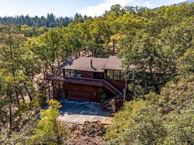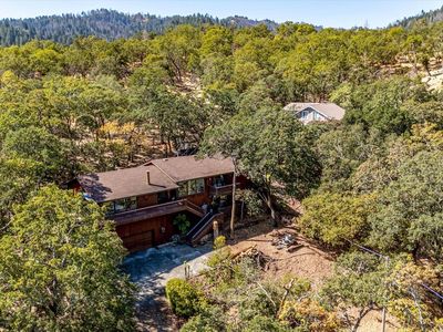 Located in Tucker Acres, perched on a scenic hillside between Calistoga and St. Helena, this expansive mid-century home offers breathtaking panoramic views of Mt. St. Helena, the Palisades, and surrounding vineyards. With a fantastic floor plan and stunning vistas from the main living spaces and primary suite, this property is ready to be reimagined into a remarkable Wine Country retreat. The home features three bedrooms and two bathrooms, with the secondary bedrooms looking out over a serene backyard shaded by mature oaks. A large deck spans the front of the house, perfect for sunset gatherings, while a generous garage with interior access and a private-entry studio downstairs adds functionality and space. Though the home requires extensive renovation, its great bones and unbeatable location across from the Vine Trail and next to Bothe Napa Valley State Park make it an extraordinary opportunity. With creativity and vision, this could be an iconic primary residence or weekend getaway in the heart of Napa Valley wine country.