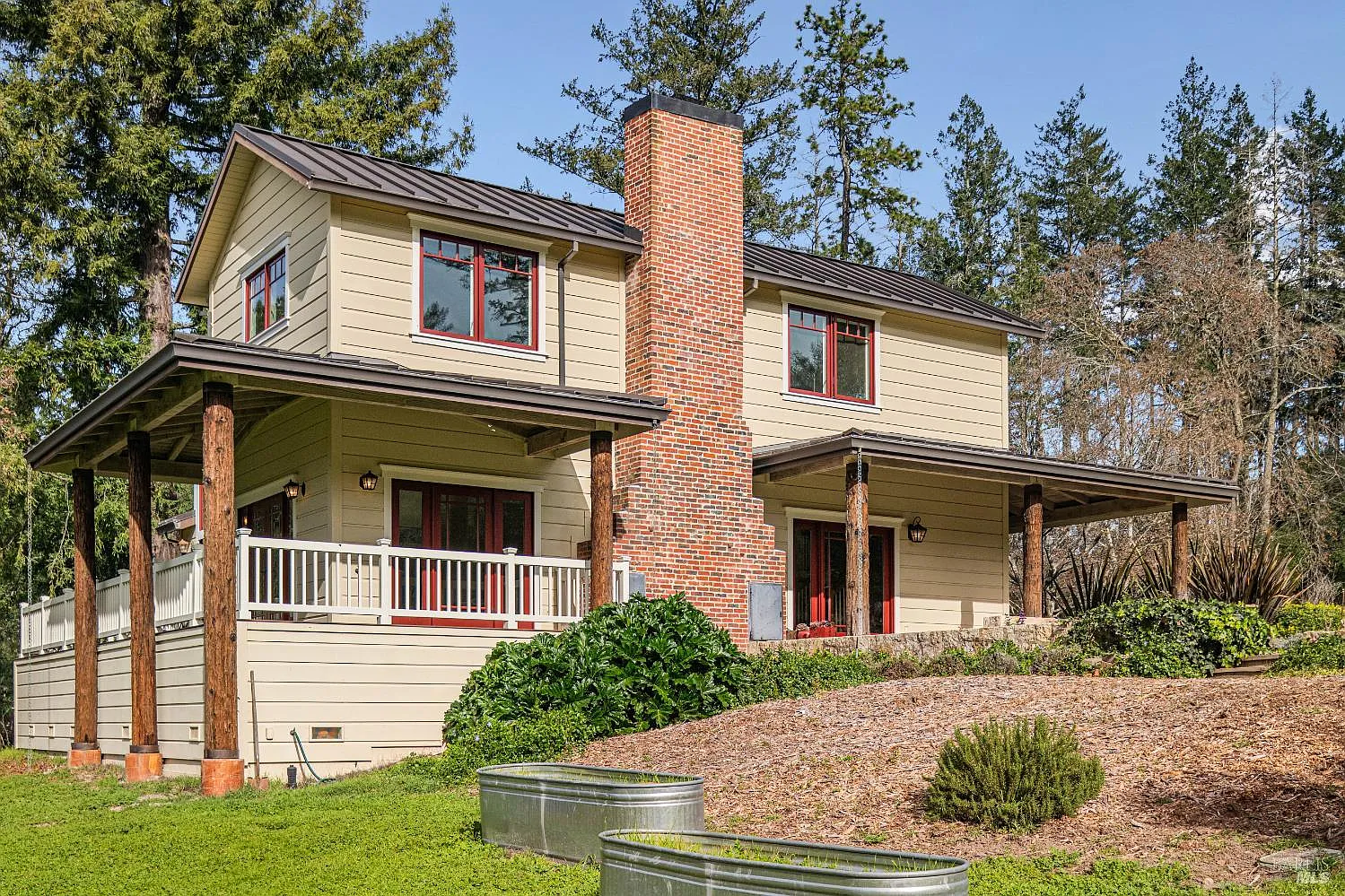 Private Howell Mountain estate with exceptional living space & income potential. Welcome to a rare and soulful country estate in the heart of the prestigious Howell Mountain AVA where natural beauty, community, and versatility come together. Set on 2+ serene acres with approximately 3,800 sq ft across multiple structures, this special property offers inspiring possibilities for multi-generational living, hosting, or meaningful rental income. Long cherished as a gathering place for family across generations, it is now ready to welcome its next chapter. The Main Residence is ~3,000 sqft. The beautifully renovated circa-1920 Craftsman farmhouse blends timeless character with refined modern living. Vaulted ceilings, British oak hardwood floors, and a warm fireplace anchor generous living spaces. French doors and a wraparound porch create effortless indoor-outdoor flow, framing sweeping vineyard views. The gourmet kitchen features a Viking dual-oven range, maple block island with baker's marble inlay, wine refrigerator, and inviting dining nook. The Guest House is ~800 sqft and offers Income Opportunity. Privately situated above an expansive garage/workshop and carport, the one-bedroom apartment is ideal for extended family, guests, or attractive rental income. The garage also offers additional storage or warehousing rental potential. The Historic 1897 Stone Building is ~288 sqft, a charming stone structure with cellar. Perfect as a wine room, studio, or peaceful retreat. Resort-Style Outdoor Living: pool and outdoor kitchen create a private oasis for gathering, celebration, and relaxation. Moments from Las Posadas National Forest trails, this Angwin estate offers beauty, flexibility, and an authentic Napa Valley lifestyle meant to be shared, enjoyed, and lived fully.