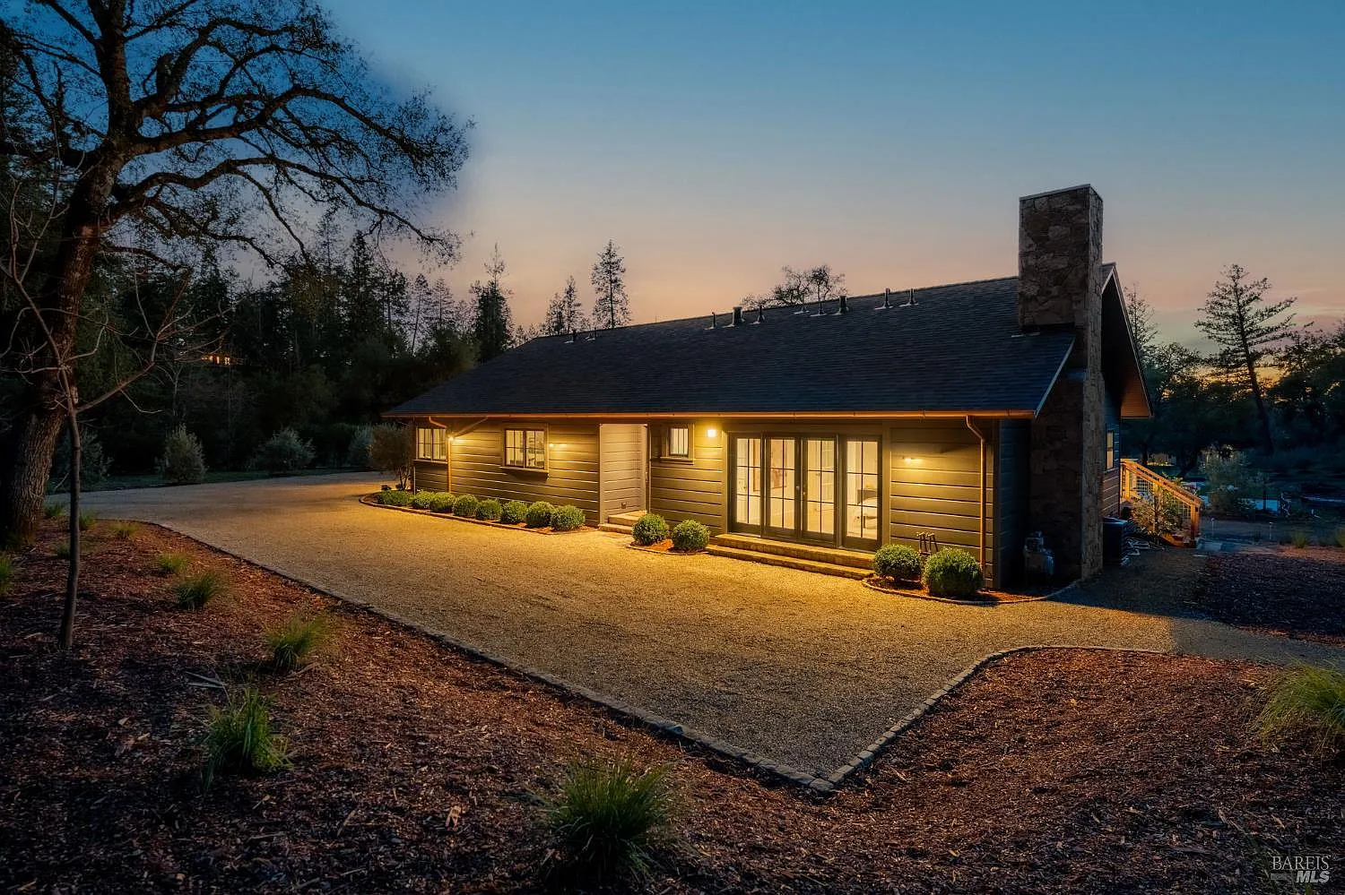 Located along a quiet stretch of White Cottage Road in Angwin, this newly remodeled single-level residence sits on approximately 3.5 acres just minutes from St. Helena. Light-filled interiors feature smooth wall finishes, wide-plank wood floors, recessed lighting, and built-in sound. The open floor plan connects sitting, living, dining, and kitchen spaces, with bifold French doors opening to a spacious rear deck for seamless indoor-outdoor living. From the rear deck and pool area, enjoy expansive skies and vivid Napa Valley sunsets, an elevated vantage point that captures the natural beauty Howell Mountain is known for. The kitchen includes a Viking six-burner gas range with grill, Sub-Zero refrigerator, shaker-style cabinetry, rustic tile detail, and an oversized stainless sink. A laundry room is conveniently located off the kitchen with access to the attached two-car garage. The primary en suite offers private deck access overlooking the pool, gardens, and greenhouse, a walk-in closet, luxury bath with freestanding soaking tub, double vanity, and a stall shower. Outdoor amenities include an in-ground pool with automatic cover, expansive entertaining deck, detached barn, and gated driveway, an elevated setting defined by privacy, light, and the remarkable clarity of Howell Mountain skies.