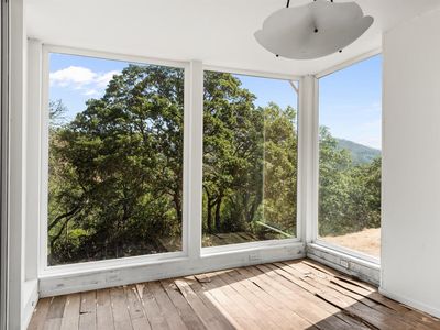 This architecturally inspired retreat is perched high above the breathtaking Napa Valley, offering unparalleled peace, privacy, and solitude. Available for the first time since its construction in 1982. Here is your opportunity to update and renovate this home into your personal Shangri-La. The main level features a primary sleeping area, full bathroom, living room, dining room, and kitchen. Laundry / utility room on main level as well. Upstairs are two additional bedrooms and 2nd full bathroom. Vaulted ceiling and expansive windows along the north and east sides fill the interior with natural light providing an inviting atmosphere and space. The 10-acre parcel is on a downslope with dense woodland enhancing the secluded environment. Recent brush clearing around the home has established improved defensible space. A nearby seasonal creek crosses the property and a 2nd level area may accommodate an additional outbuilding. With its original condition, this property offers solid bones for those insprierd individuals who have vision.