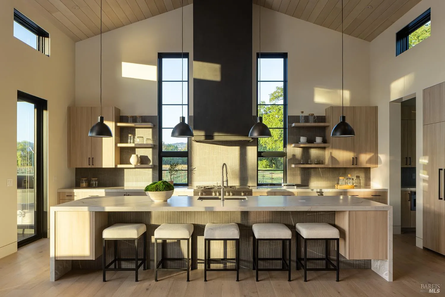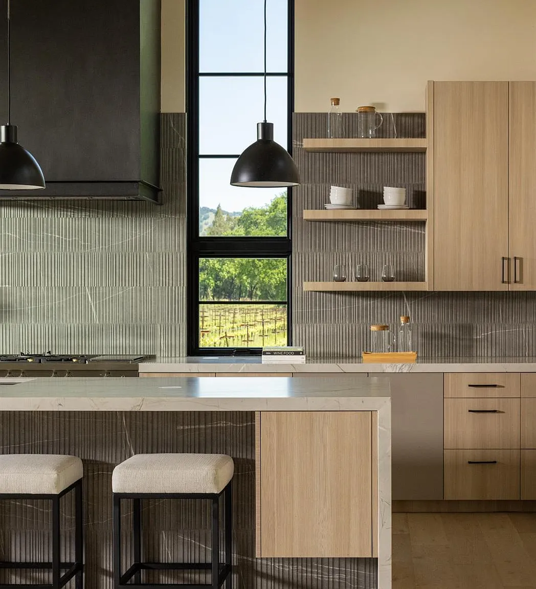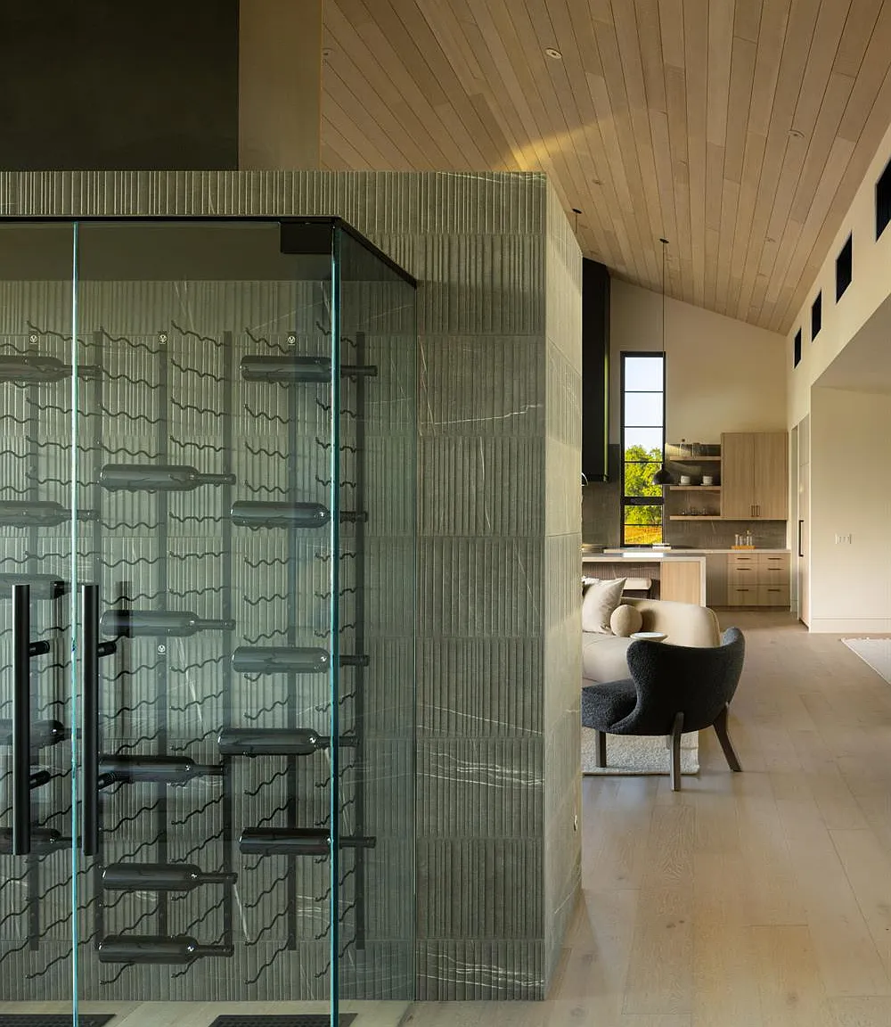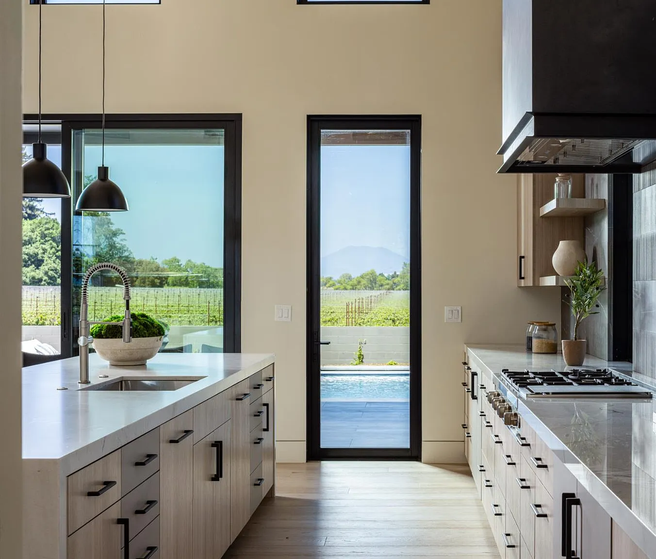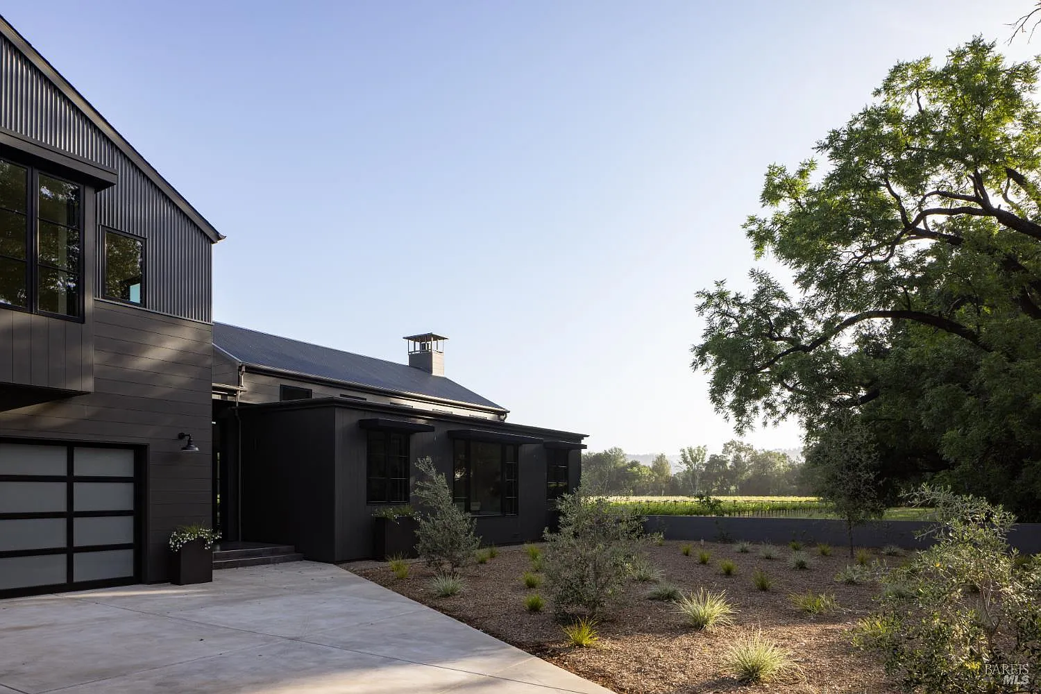In one of Napa Valley's most iconic winegrowing regions, this distinctive Rutherford property captures panoramic vineyard views and a profound sense of seclusion. Encompassing approximately 0.33 acres and surrounded by premium Cabernet Sauvignon vines, it occupies a rare position within the heart of the renowned Rutherford AVA. The residence is a bold yet refined interpretation of agrarian design, blending rustic materials with contemporary form, vertical and horizontal siding, corrugated metal accents, and crisp, clean lines define its striking silhouette. The residence features three thoughtfully designed bedrooms, including a tranquil primary suite on the main level that offers comfort and privacy. At the heart of the home, a dramatic great room with vaulted ceilings, transom windows, and an expansive wall of sliding glass doors opens to a covered loggia, creating a seamless connection between indoors and out. Just steps from the main kitchen, a fully equipped outdoor kitchen enhances the ease of alfresco dining and entertaining. The terrace unfolds to a sun-drenched pool bordered by low garden walls, manicured lawn, and generous lounge space all set against unobstructed views of surrounding vineyards. This property embodies the elegance and ease of Napa Valley living.