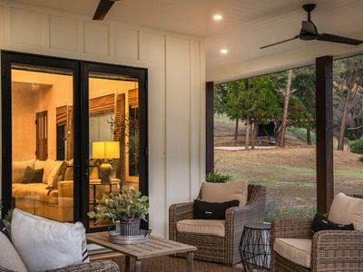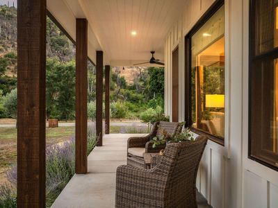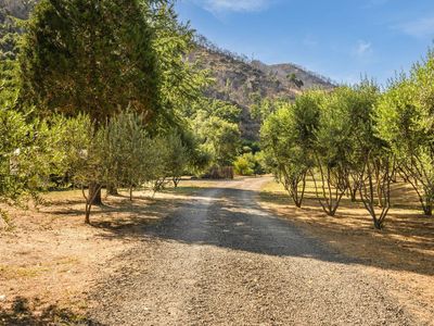 5400 Wragg Canyon epitomizes the allure of the Napa Valley fused with the tranquility of a private ranch. Crafted in 2023 with the discerning owner in mind, the 3 bedroom, 2 bath single story 1,925 sq ft modern farmhouse provides a sophisticated yet relaxed haven with a spacious open floorplan. The 16 ft vaulted great room, bathed in natural light through the extensive use of Marvin windows and doors, is complimented by clean lines, custom cabinetry, a warm color palette, French oak wood floors, quartz and spa influenced surfaces. True to the farmhouse aesthetic, the covered porches provide quiet sanctuaries to unwind and allow for a seamless indoor-outdoor flow. With full Wildland-Urban Interface compliance, the build highlights state of the art materials and construction with the use of Boral/Hardie Back siding, Vulcan air vents, water hydrant, storage tanks, Nuvo UV filtration, owned Solar and advanced fire suppression. Sited on approx.15 acres, minutes to the Pleasure Cove Marina, the creek side setting meanders through an expansive olive grove, producing upwards of 50 gallons annually of artisan oil, winding past the 4 stall pole barn and corrals. A detached garage completes this unparalleled retreat, offering privacy, luxury, and endless possibilities in Wine Country.