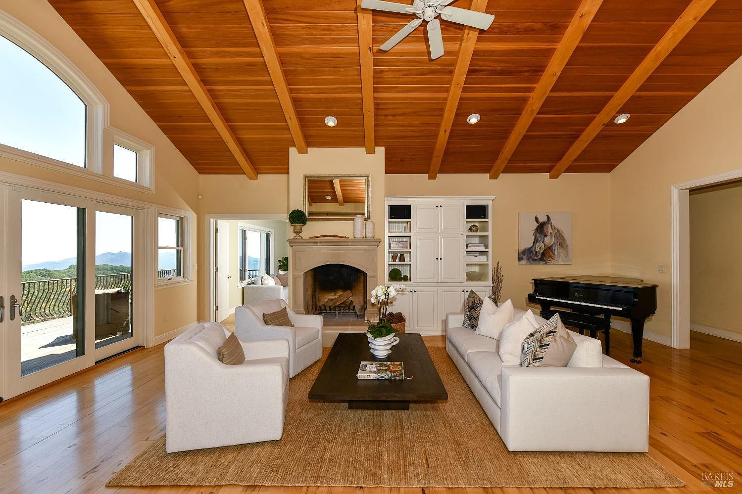 Discover Your Napa Valley Penthouse Adventure offering privacy, resort like feel, with all the demands for equestrian & agrarian living. This Napa Valley sanctuary, where every day is an adventure, perched atop Longhorn Ridge, this gated, secure 153-acre estate is a thrilling blend of nature's finest elements & artistic brilliance. Soar to the heights of 2,000 feet, with panoramic views stretching across the sky from Mt Lassen, Diablo, Sales Force & the GG Bridge. Crafted in collaboration with the imaginative Architect Cliff Simpkins, this 4,558 square-foot, single-story creation features 4 bdrms & 3.5 baths, + guest quarters, thoughtfully designed to suit flexible lifestyles. The open-beamed living room, with its striking fireplace, anchors an exhilarating open concept floor plan. Journey through the formal dining & media rooms, a vibrant bar, & a chef's kitchen with a sprawling island perfect for creating culinary masterpieces. Each room is designed to capture the breathtaking vistas that surround you. Venture onto the south-facing Ipe deck for stunning sunrises, & relax in the in-ground pool with spa & Baja shelf. This Napa haven invites you to unwind, explore, & enjoy your favorite tunes through the state-of-the-art Sonos system. Embark on your Napa adventure at 100 LHR