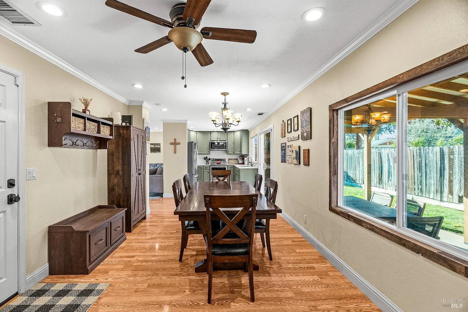 Beautifully updated single-level North Napa home offering an open, light-filled floor plan ideal for modern living. The kitchen features Cambira quartz countertops and flows seamlessly into the living and dining areas with LED recessed lighting, Pergo laminate flooring, and a stately fireplace. The home includes three bedrooms, including a private primary suite, and a two-car garage. Extensive improvements include a 30-year composition roof, exterior paint, HVAC furnace and condenser, concrete driveway and walkways, and a 50-gallon water heater. Energy-efficient features include a QuietCool whole-house fan, whole-house and under-sink water filtration systems, and a 6.0 kW Tesla solar panel system offering significantly reduced electrical costs. The spacious front and backyard are enhanced with custom redwood accents, outdoor lighting, and mature lemon and lime trees. An insulated Tough Shed with electrical and laminate flooring provides ideal flex space for a home office or studio. A well-maintained home combining comfort, efficiency, and North Napa appeal.