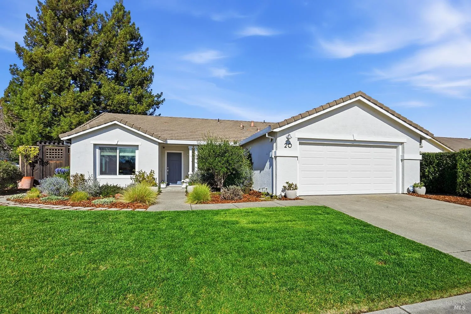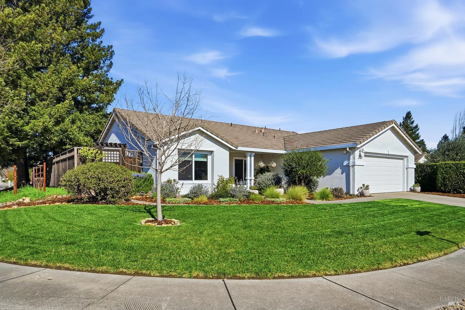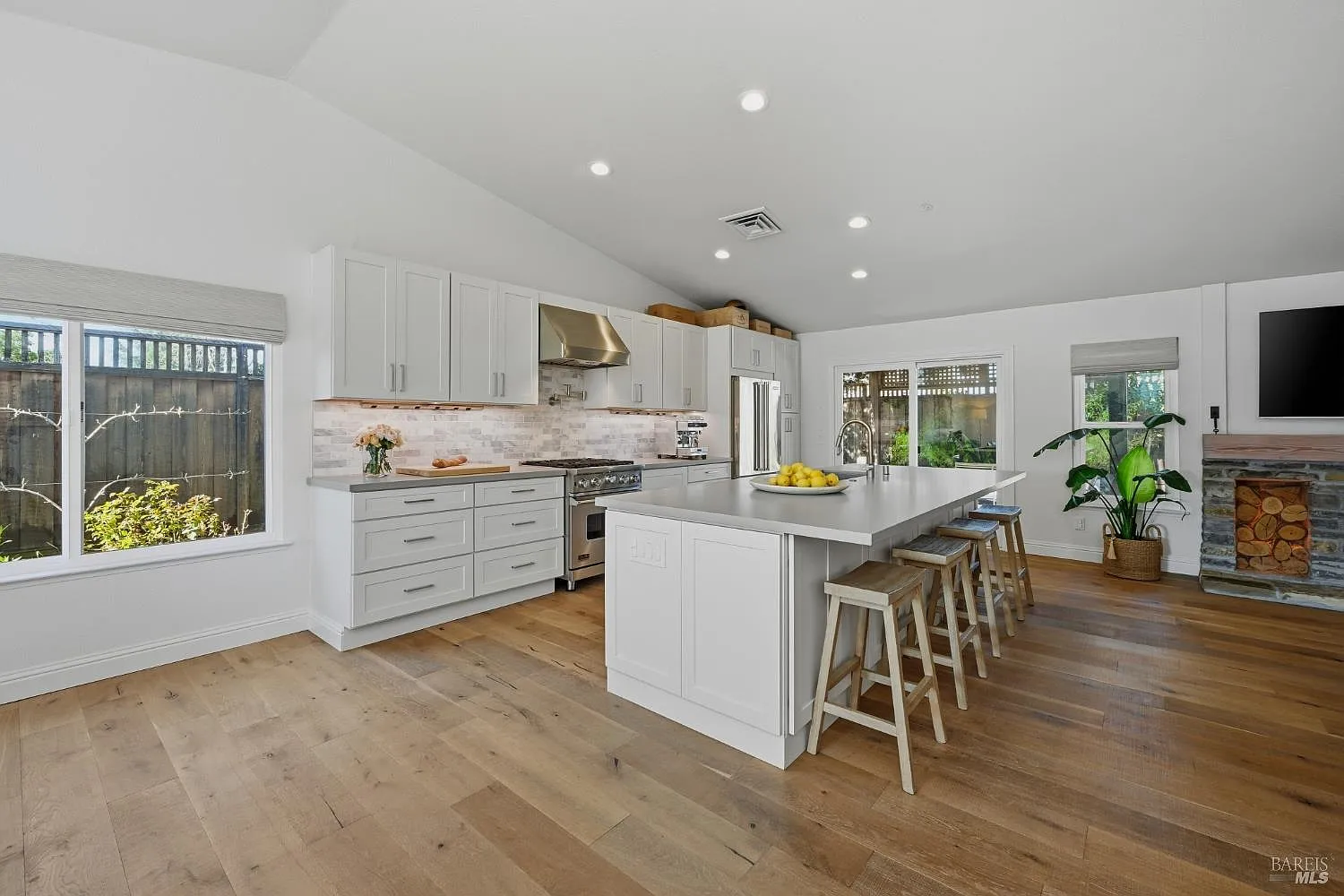 Beautifully remodeled single level 3BD/2BA home on a desirable corner lot in one of North Napa's most sought after neighborhoods. Open concept great room with vaulted ceilings, abundant natural light, wide plank European oak floors and a wood burning fireplace with limestone surround. Remodeled kitchen features stainless steel Viking appliances, a generous 10 ft island with seating ability, Shaker cabinetry and modern hardware. The primary suite includes French doors to the backyard and a remodeled bath with ceramic tile finishes and quartz countertop. Secondary bath offers marble finishes and quartz vanity. Additional upgrades include custom built ins, oak detailed closets, new windows and treatments, new HVAC and new water heater. The curated yard showcases a hobby vineyard, heirloom grafted apple tree, peach tree, espaliered apple and Greek and Italian olive trees. A turnkey property with exceptional finishes and a unique garden setting.