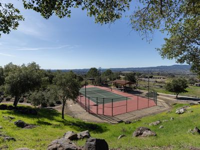 Stunning Estate with 2 Homes w/Napa Valley Panoramic Views! The single story main residence offers 5,181 sq.ft w/4 Bed-5.5 Baths, and an office, featuring expansive covered terraces framing the glorious Napa Valley vineyard and western hills views. The charming 2nd house (ADU) adds 1,189 sq.ft., including 2 bed/3 baths+kitchen perfect for guests. Enjoy the lighted tennis court w/cozy gazebo, or unwind by the inviting pool and spa. Convenient 7-car garage, shop, ample storage space, wine cellar and exercise room are also included. A 0.75 acres Cabernet vineyard offers opportunities to continue either to trade grapes for exceptional wine cases, or to craft your own vintage.The vineyard previously supplied grapes to esteemed winemaker Bob Pepi for his label, Eponymous. The exceptional estate is a harmonious blend of stunning views, and privacy. A Prime Location And exclusive gated area on Napa east side, this 39+- acres is minutes from Silverado Country Club & dining.